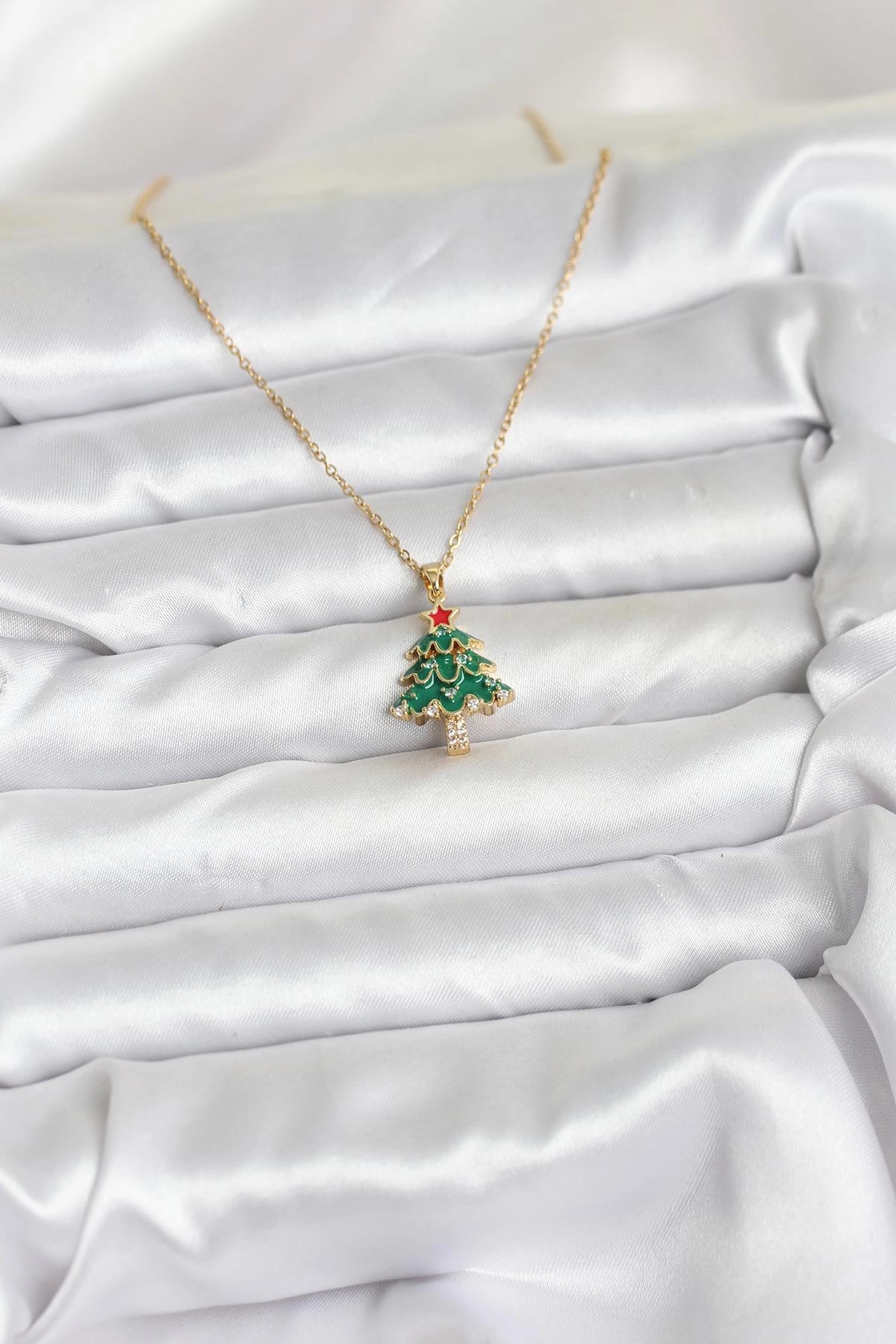 Mey İthalat® 316L Çelik Zincir Gold Renk Çam Ağacı Model Yılbaşı Temalı Kadın Kolye