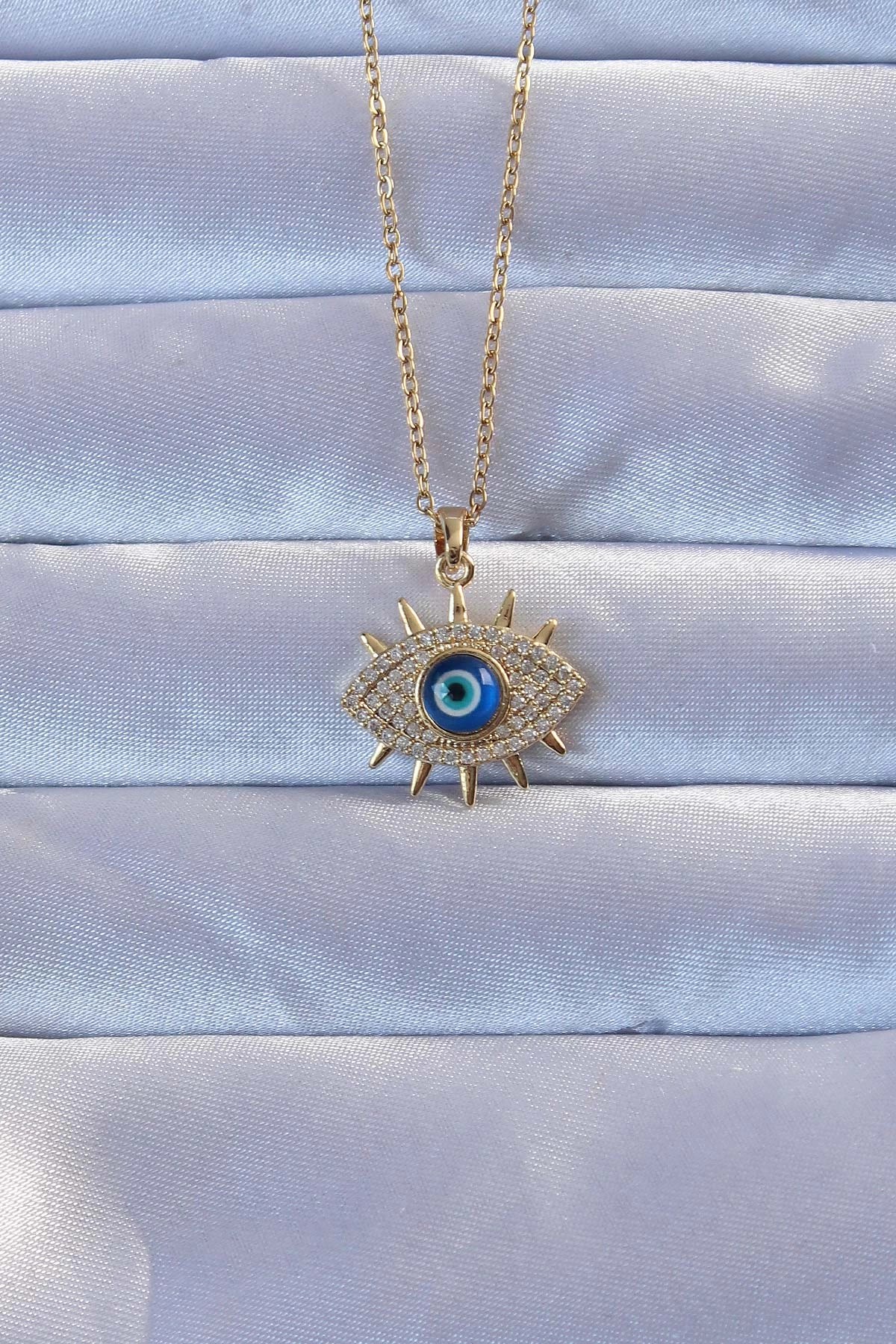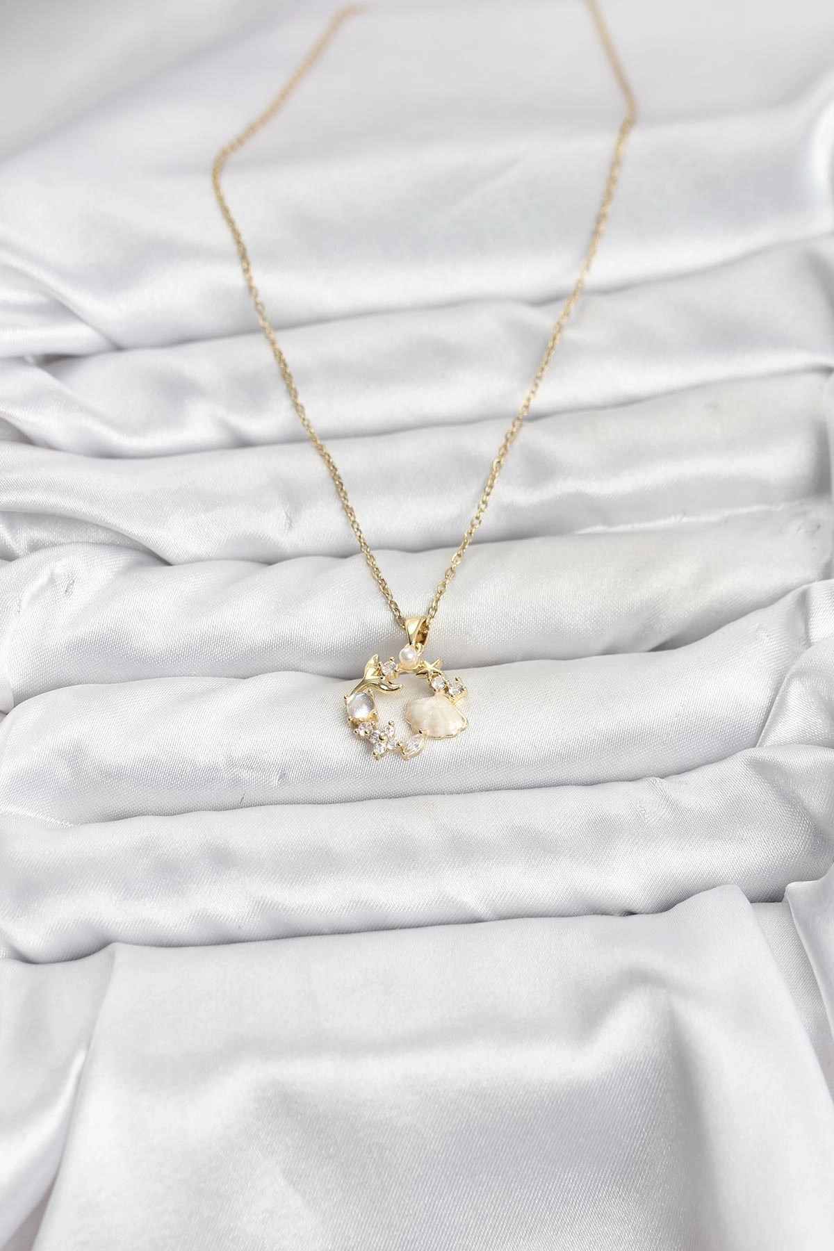 Mey İthalat® 316L Çelik Zincir Gold Renk Deniz Tema Model Zirkon Taşlı Kadın Kolye