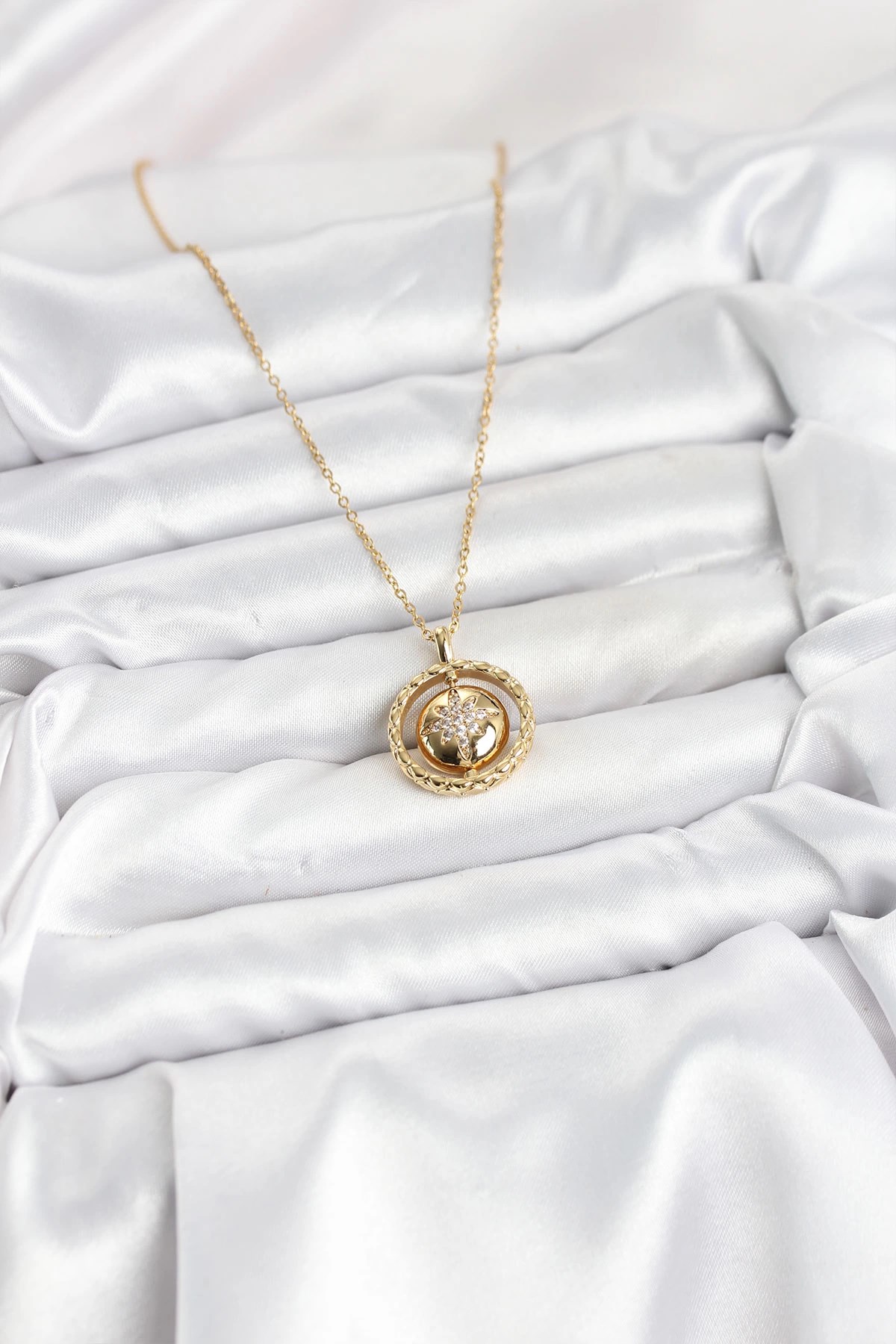 Mey İthalat® 316L Çelik Zincir Gold Renk Kutup Yıldızı Model Kadın Kolye