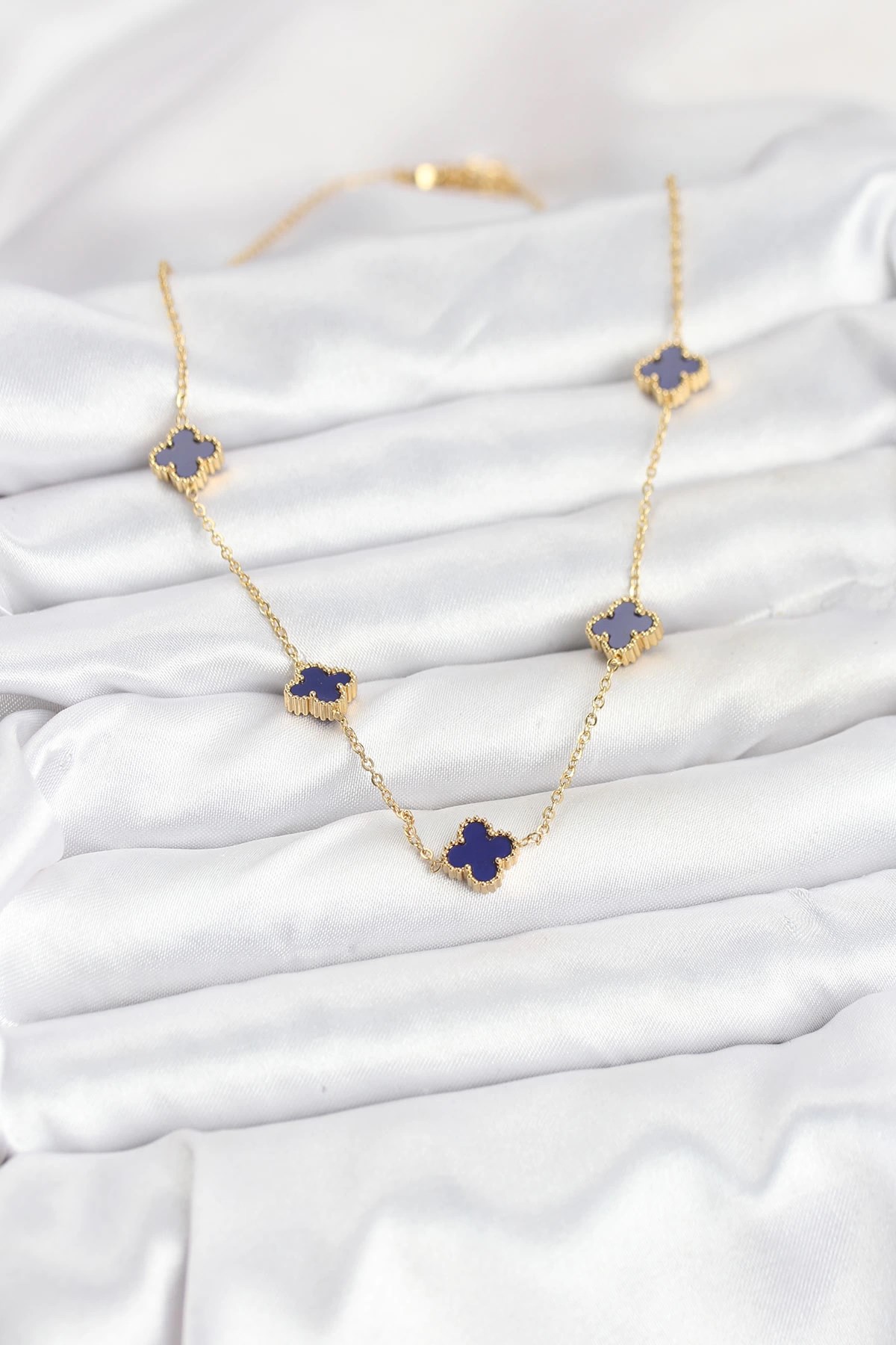 Mey İthalat® 316L Çelik Zincir Gold Renk Lacivert Baby Boy Yonca Kadın Kolye