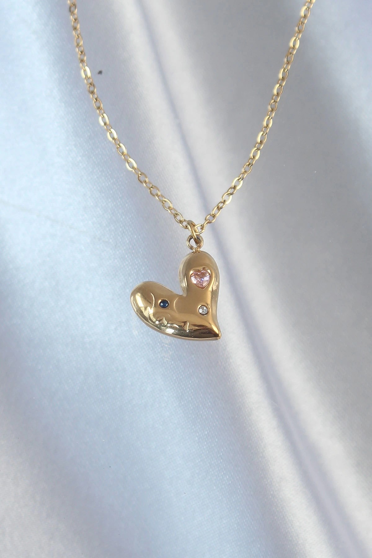 Mey İthalat® 316L Çelik Zincir Gold Renk Renkli Zirkon Taşlı Kalp Kolye