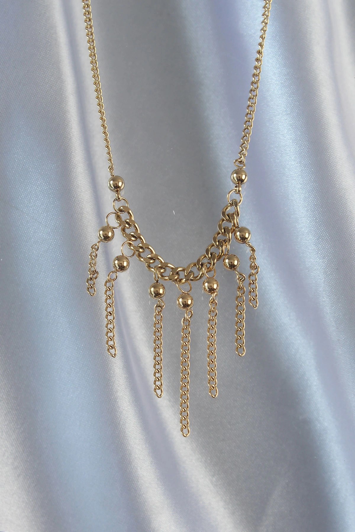 Mey İthalat® 316L Çelik Zincir Gold Renk Topçuk Detay Sallantılı Zincir Kolye