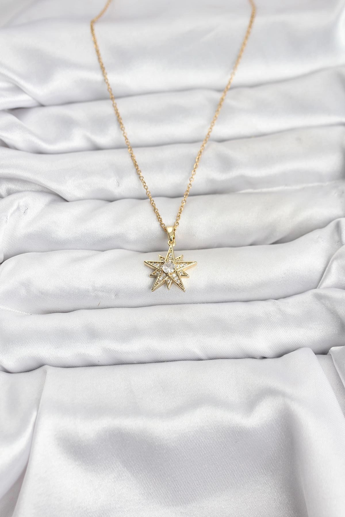 Mey İthalat® 316L Çelik Zincir Gold Renk Yıldız Model Zirkon Taşlı Kadın Kolye
