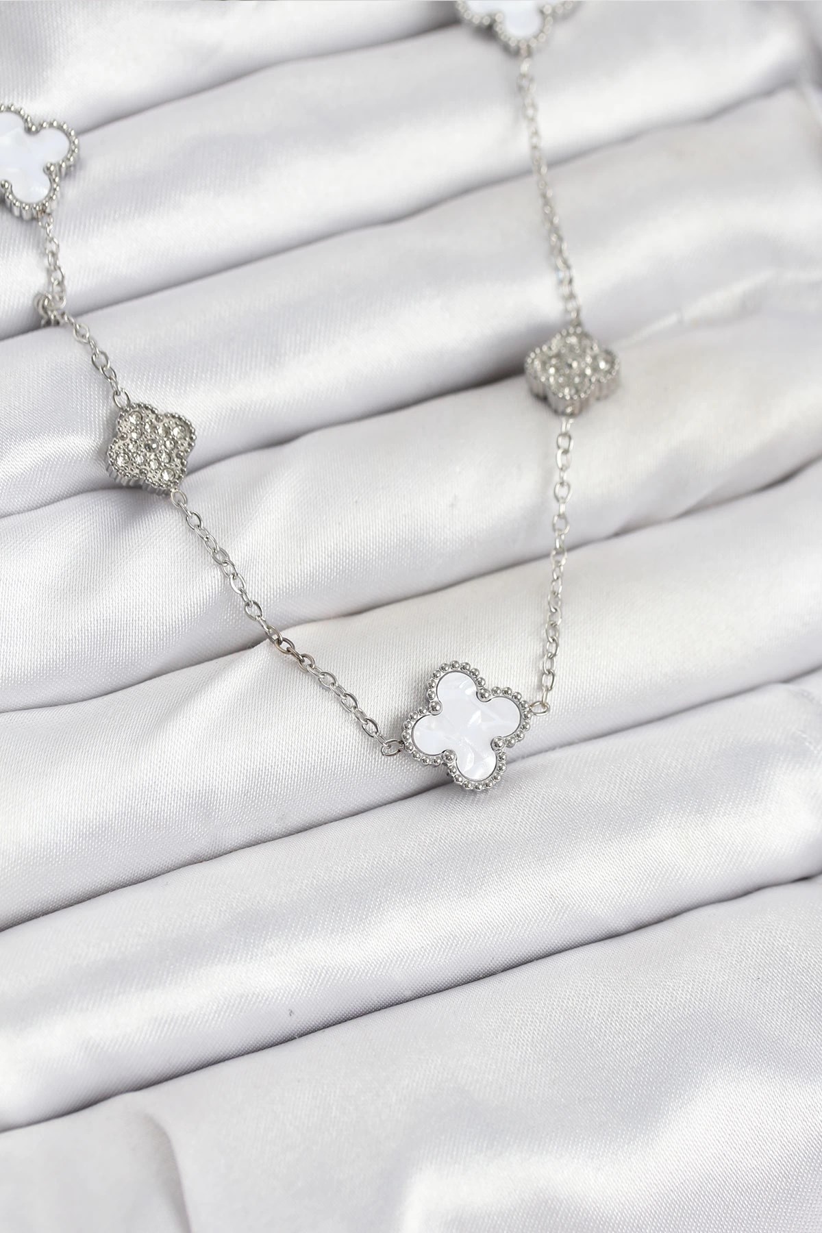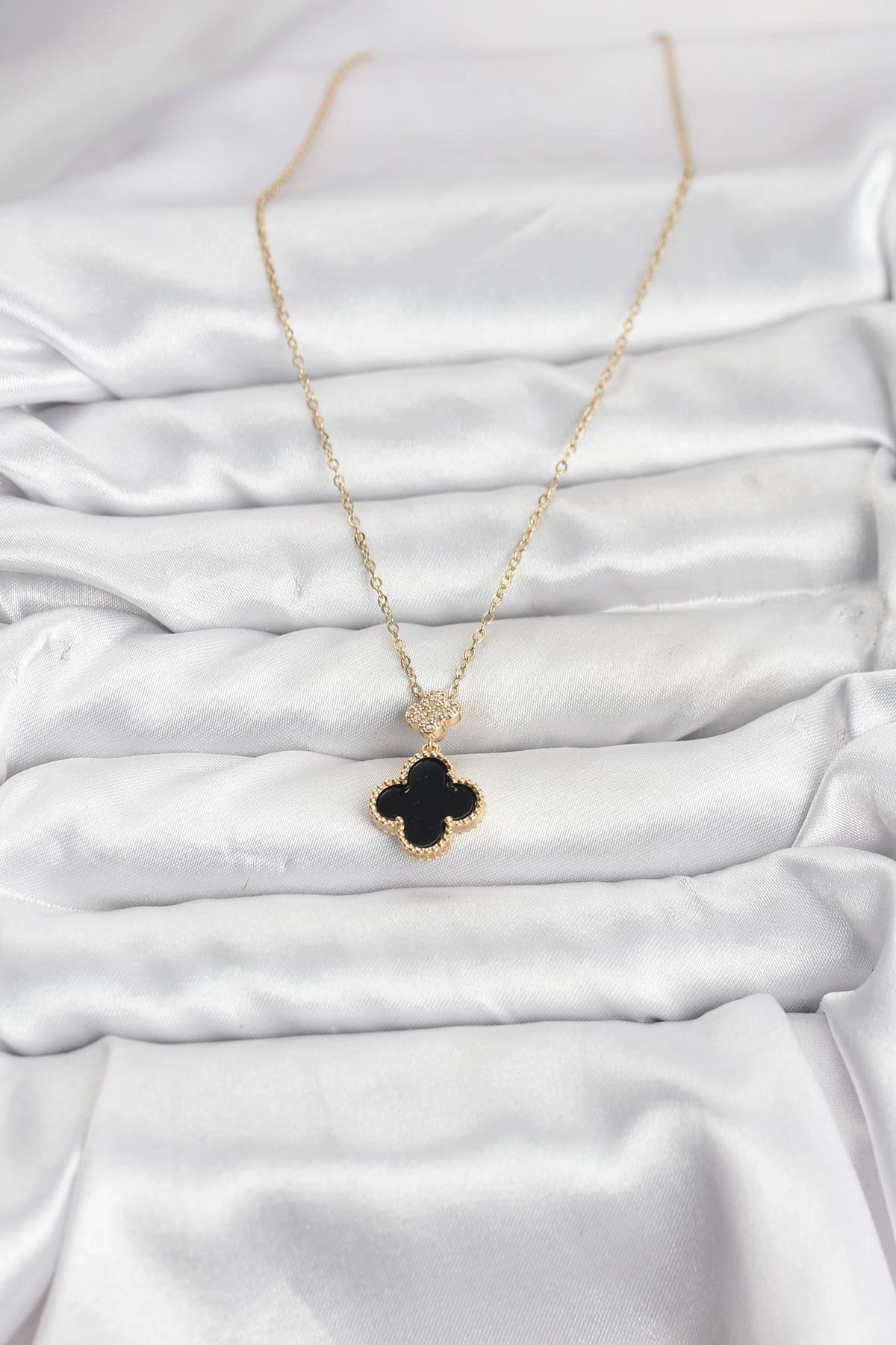 Mey İthalat® 316L Çelik Zincir Gold Renk Yonca Model Zirkon Taşlı Kadın Kolye
