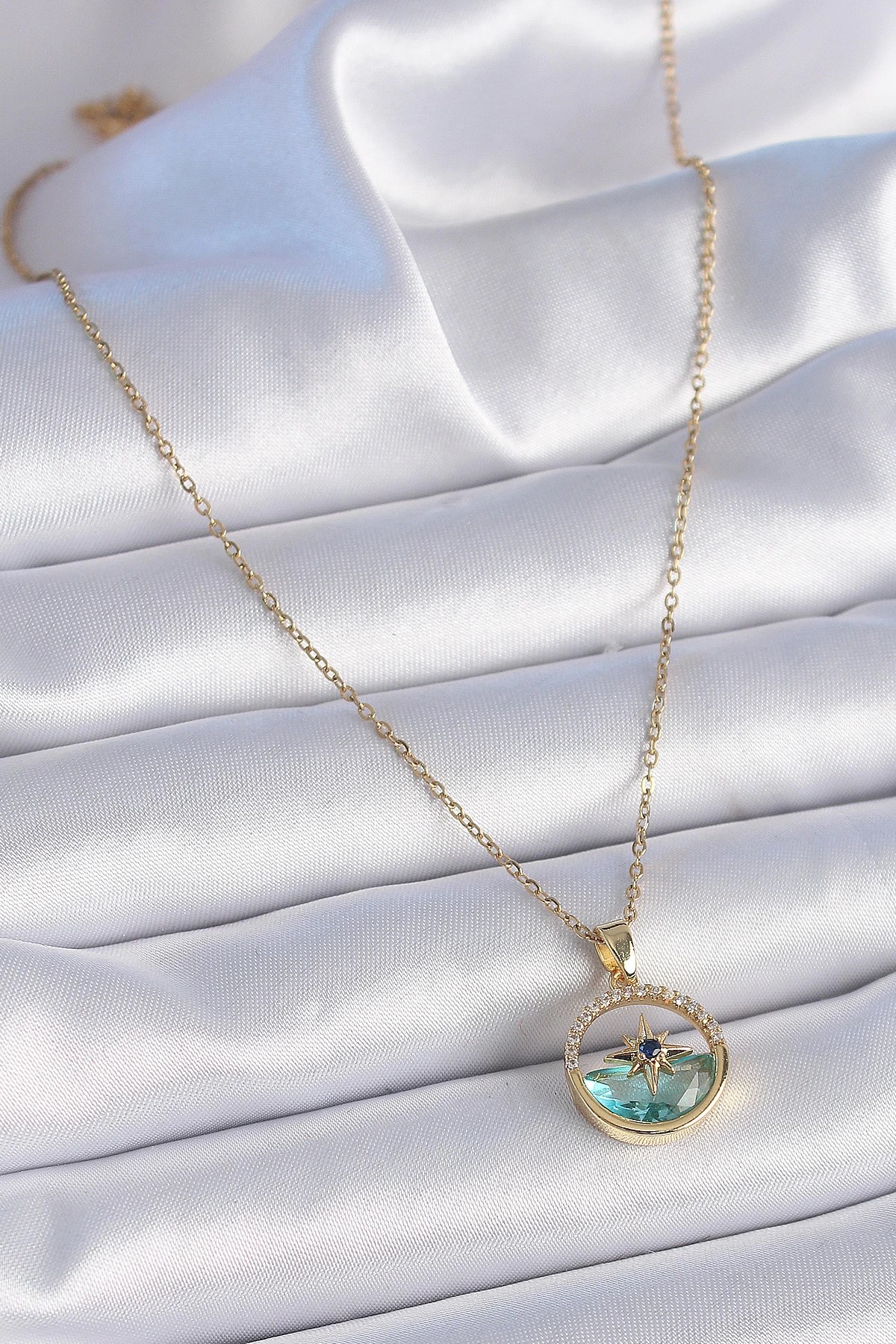 Mey İthalat® 316L Çelik Zincir Gold Renk Zirkon Taşlı Deniz Görünüm Kutup Yıldız Model Kadın Kolye