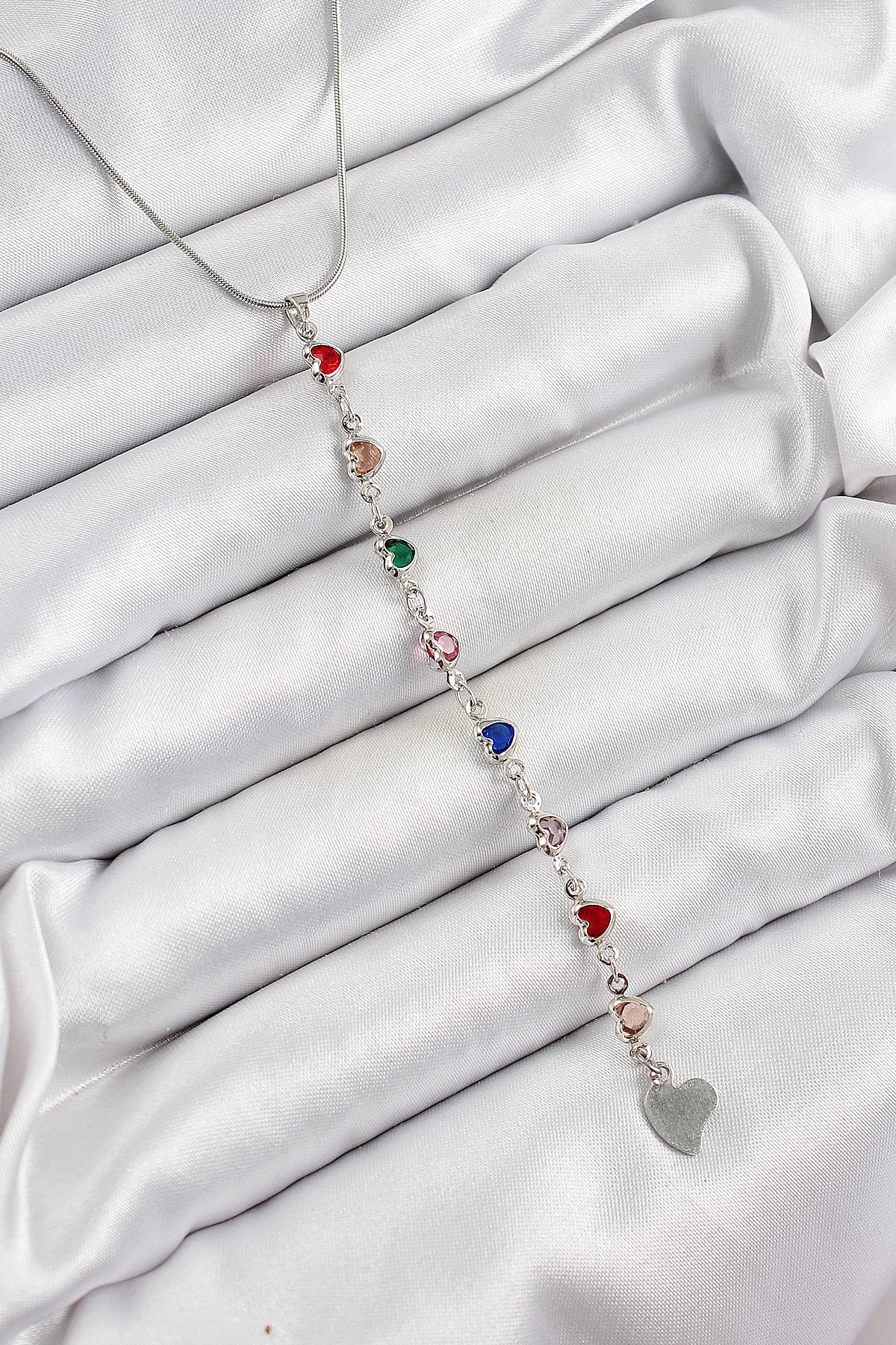 Mey İthalat® 316L Çelik Zincir Gümüş Renk İstiridye İnci Model Zirkon Taşlı Kadın Kolye