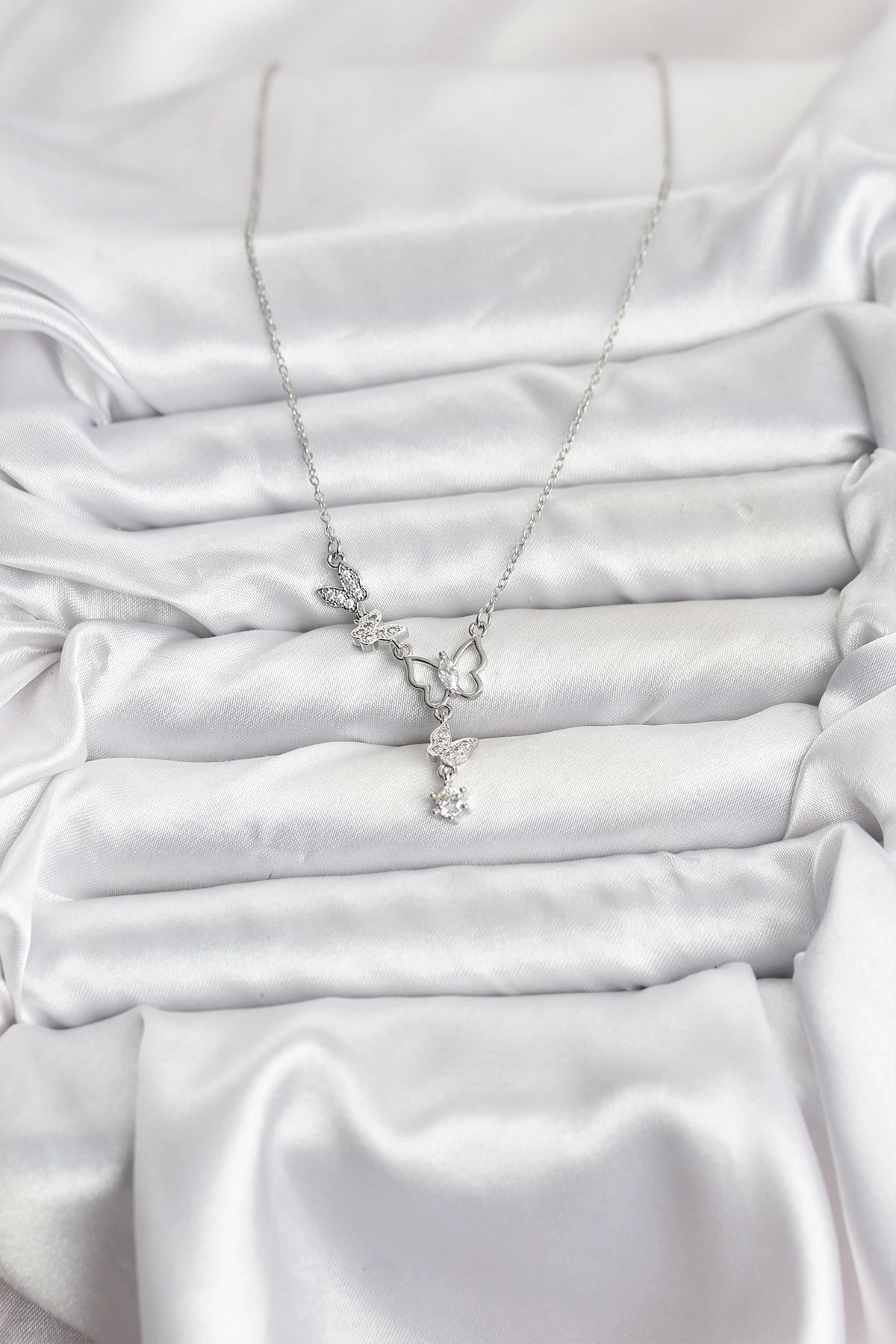 Mey İthalat® 316L Çelik Zincir Gümüş Renk Kelebek Model Kadın Kolye