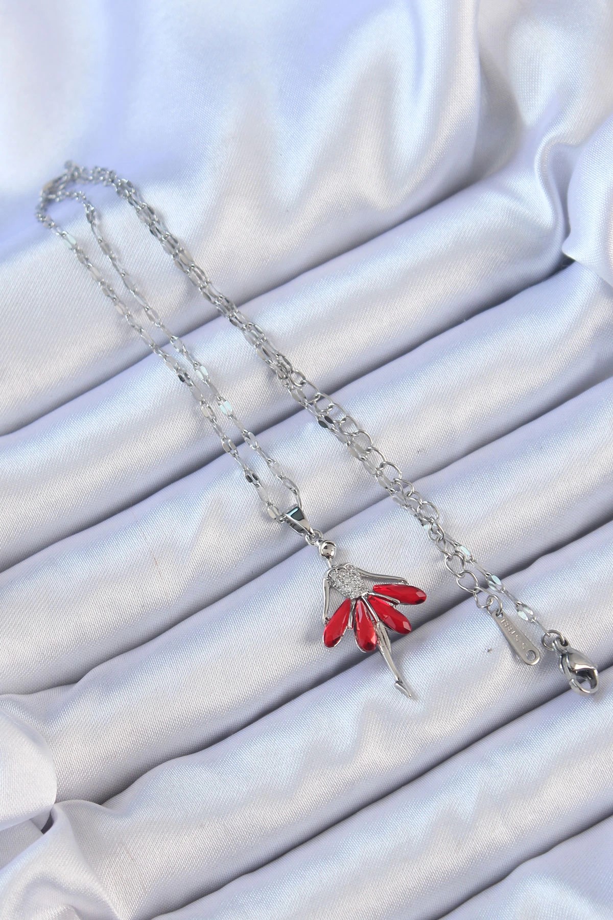 Mey İthalat® 316L Çelik Zincir Gümüş Renk Kırmızı Etekli Zirkon Taşlı Balerin Kolye