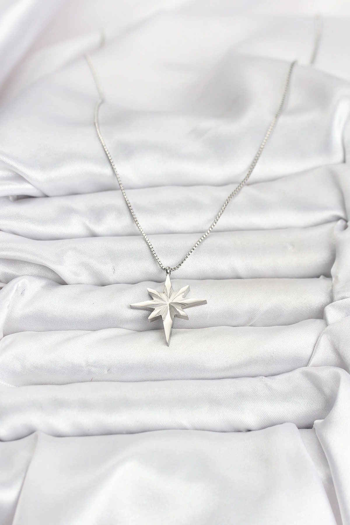 Mey İthalat® 316L Çelik Zincir Gümüş Renk Kutup Yıldızı Model 60 cm Zincir Kadın Kolye