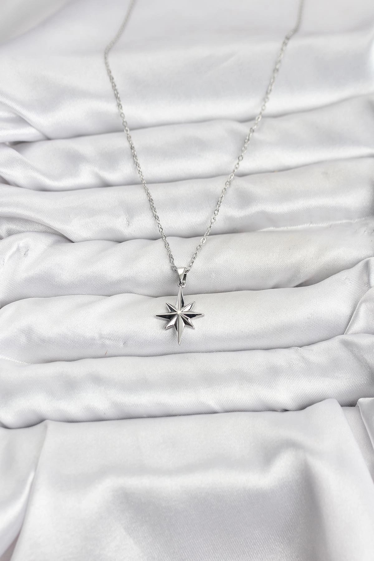 Mey İthalat® 316L Çelik Zincir Gümüş Renk Kutup Yıldızı Model Kadın Kolye