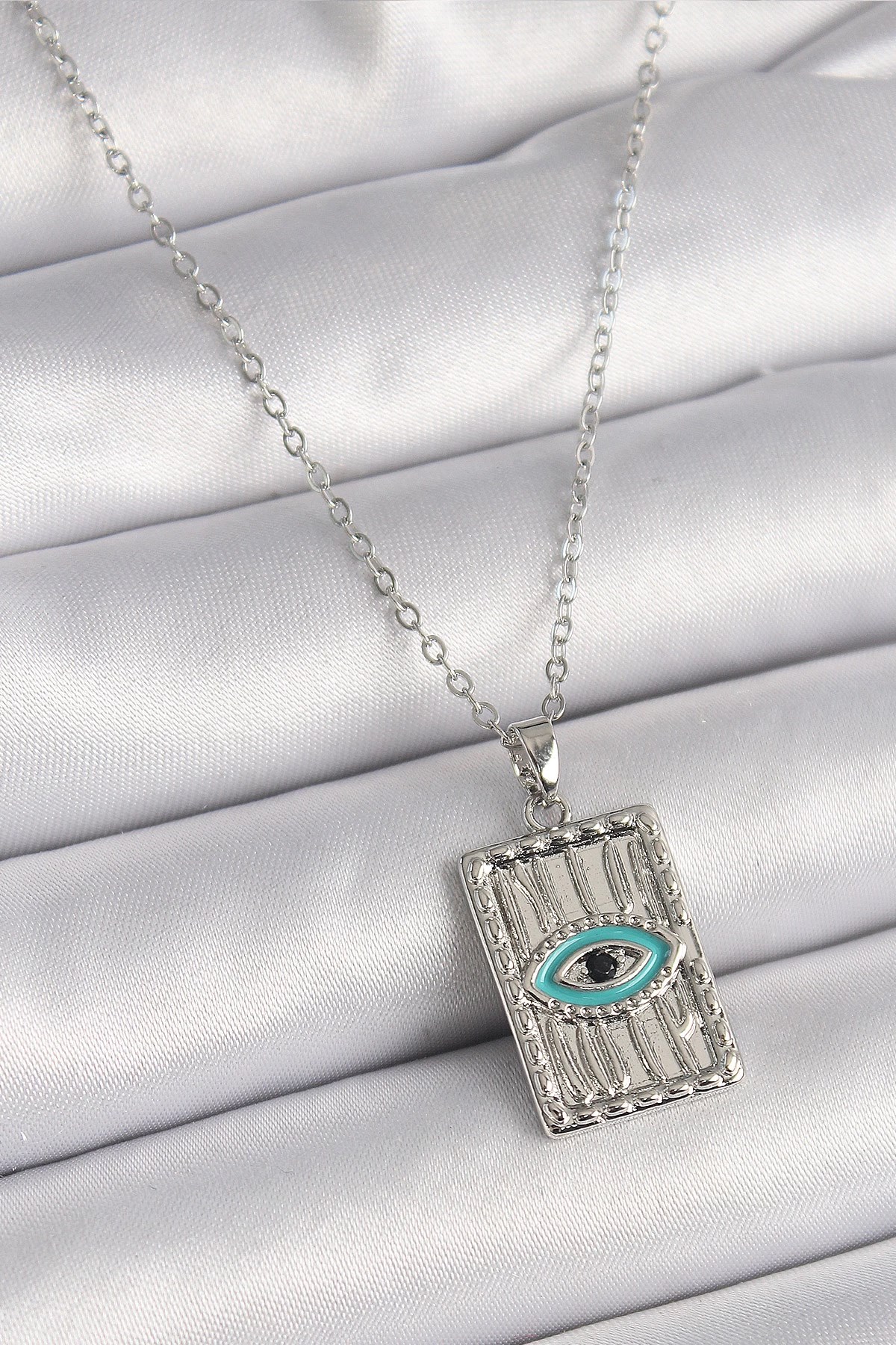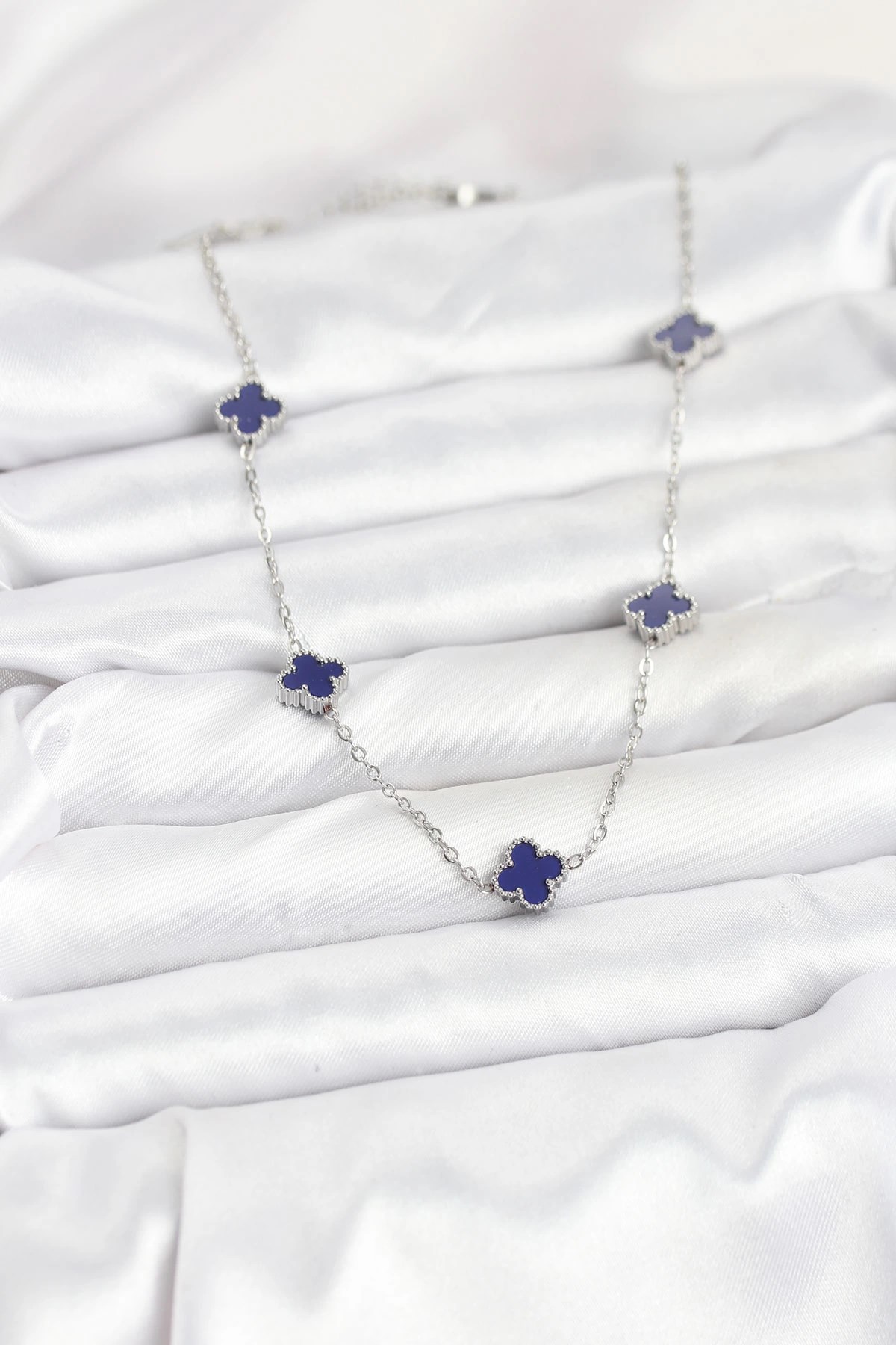 Mey İthalat® 316L Çelik Zincir Gümüş Renk Lacivert Baby Boy Yonca Kadın Kolye