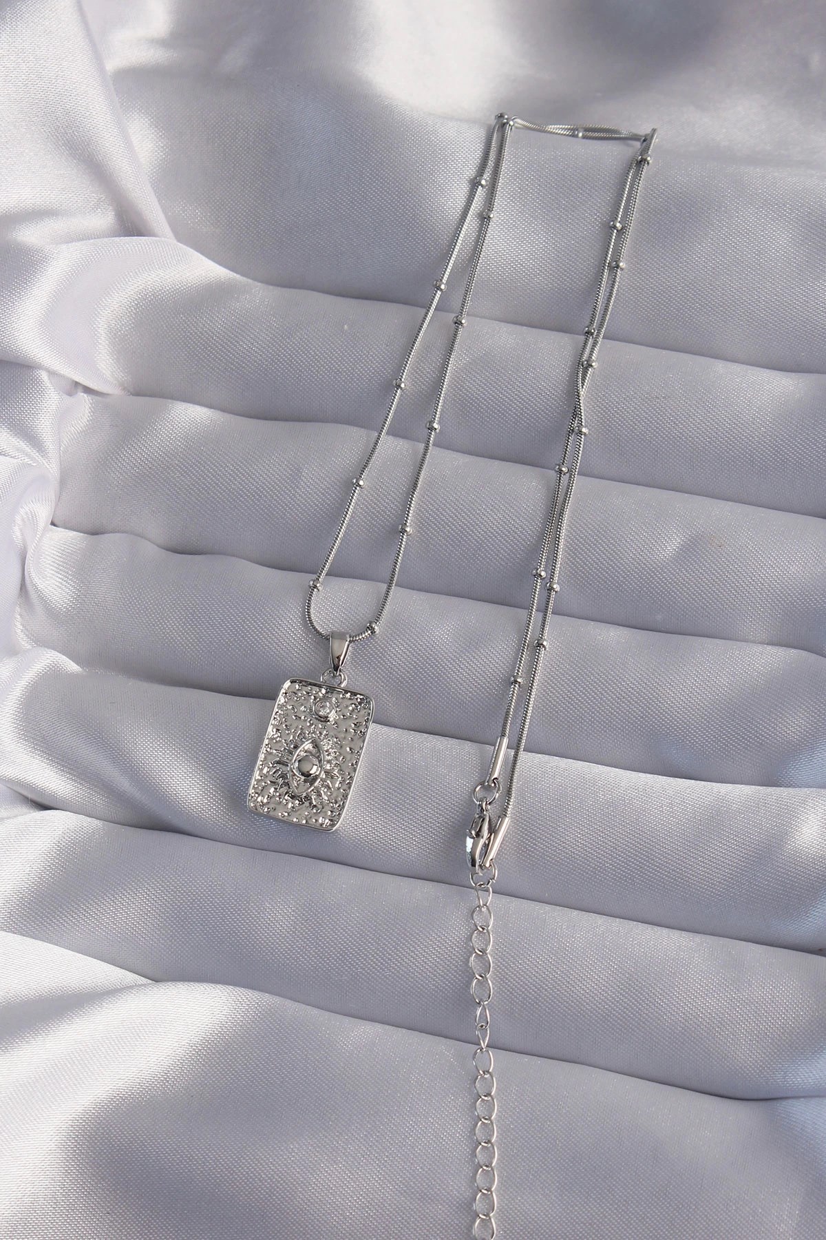 Mey İthalat® 316L Çelik Zincir Gümüş Renk Lazer İşlemeli Göz Figür Tarot Kolye