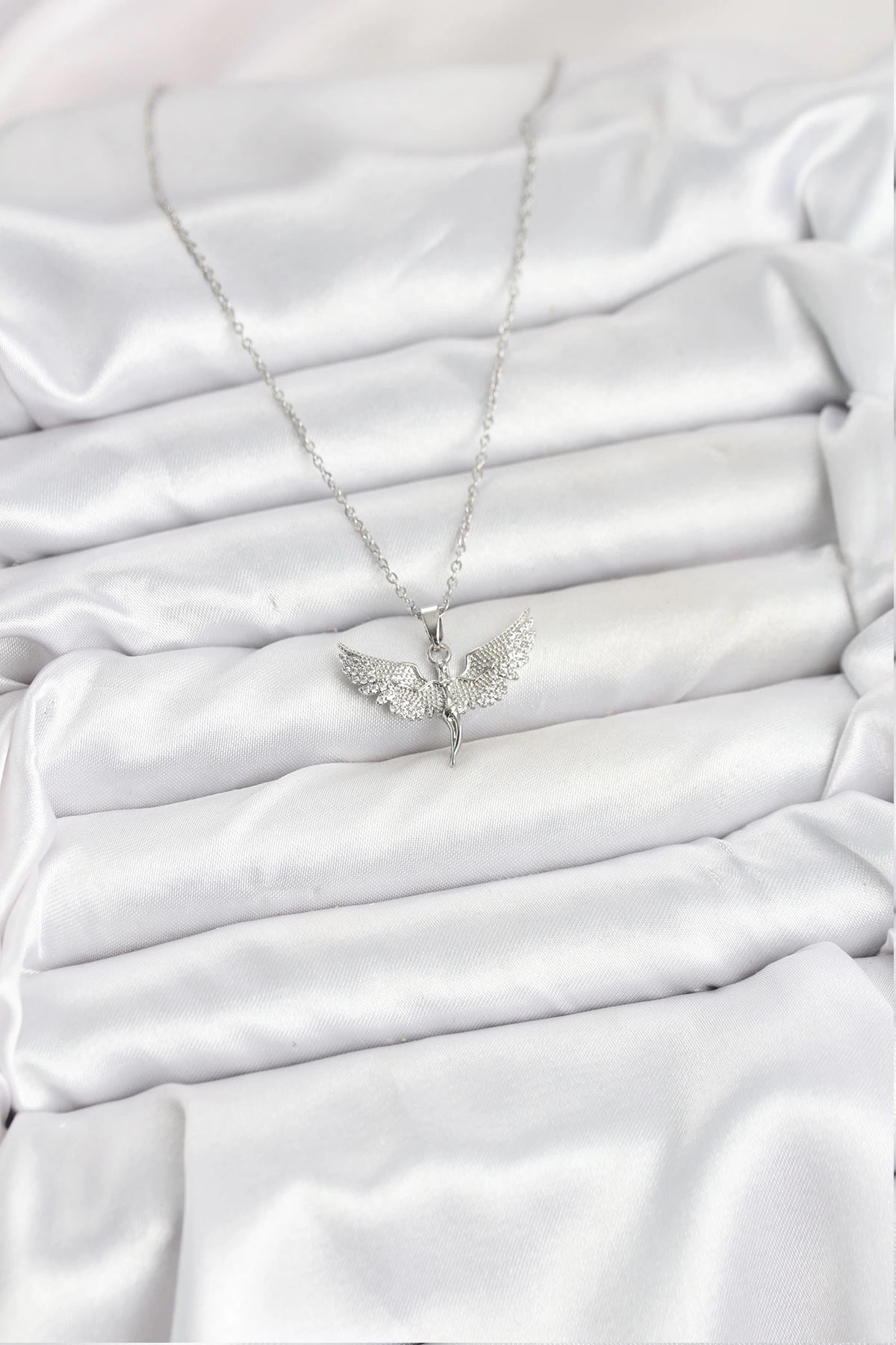 Mey İthalat® 316L Çelik Zincir Gümüş Renk Melek Model Kadın Kolye