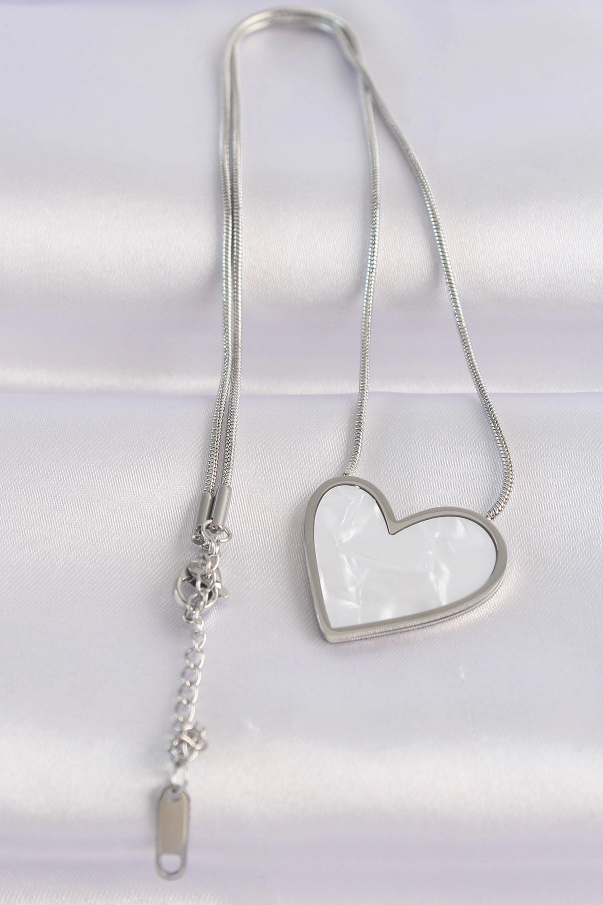 Mey İthalat® 316L Çelik Zincir Gümüş Renk Mermer Desenli Kalp Kolye