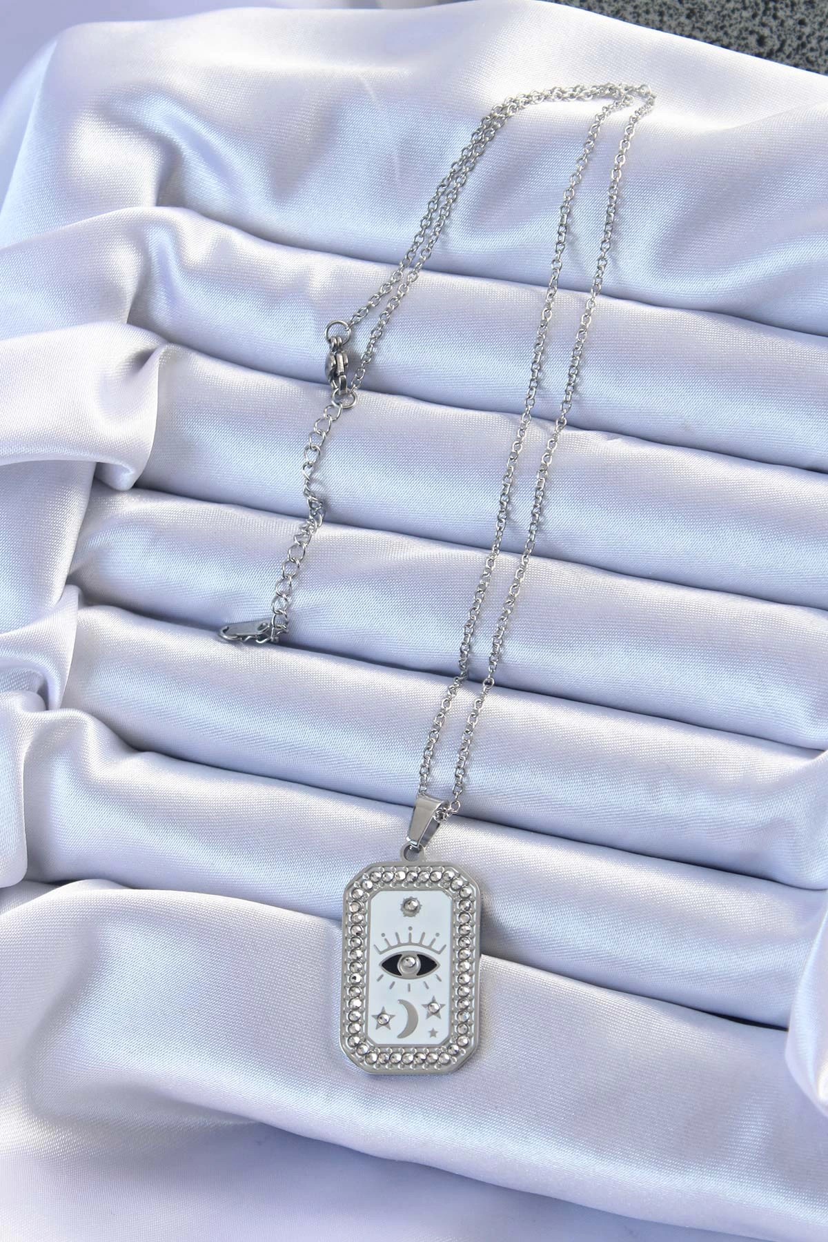 Mey İthalat® 316L Çelik Zincir Gümüş Renk Mineli Zirkon Taşlı Göz Figür Tarot Kolye