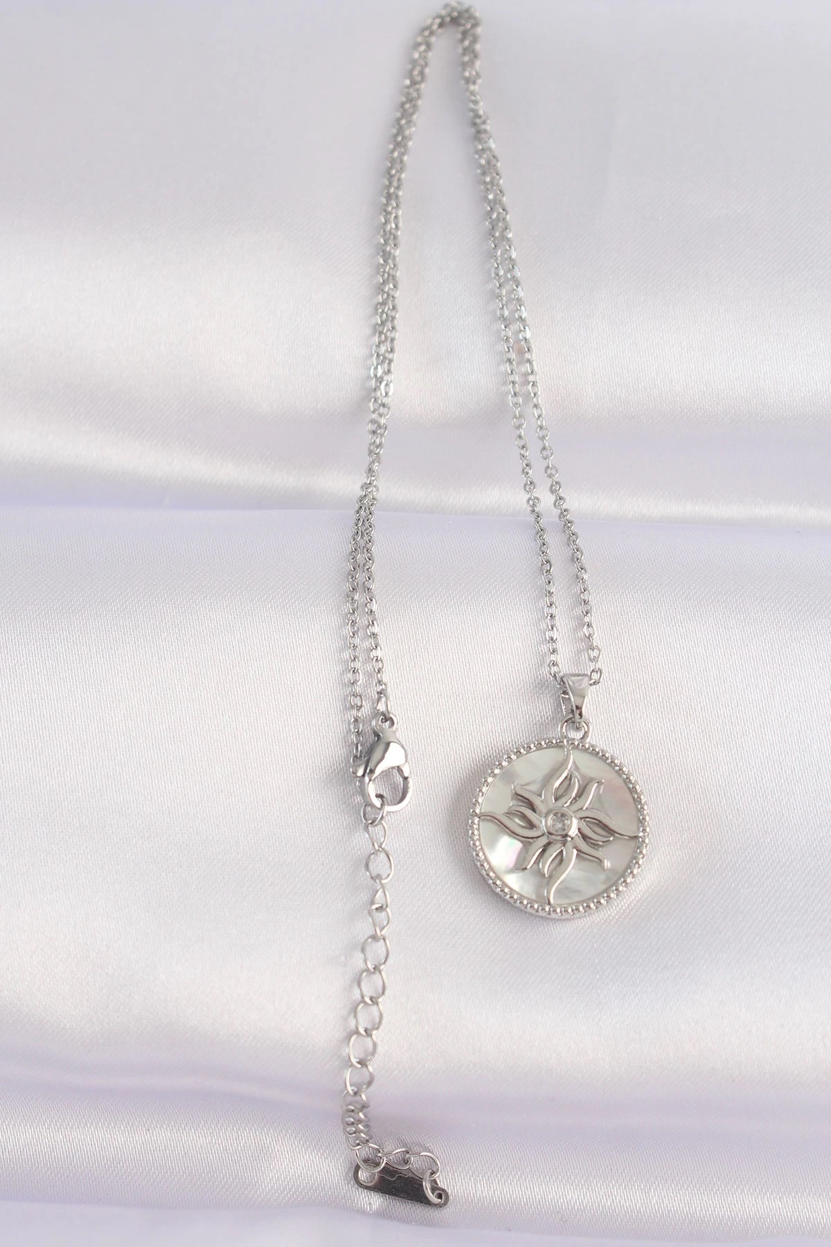Mey İthalat® 316L Çelik Zincir Gümüş Renk Oval Tasarımlı Güneş Kolye
