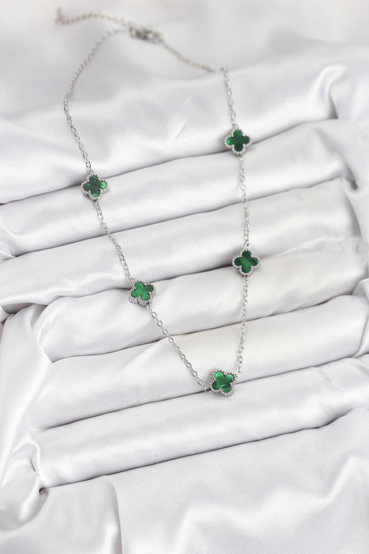 Mey İthalat® 316L Çelik Zincir Gümüş Renk Yeşil Baby Boy Yonca Kadın Kolye