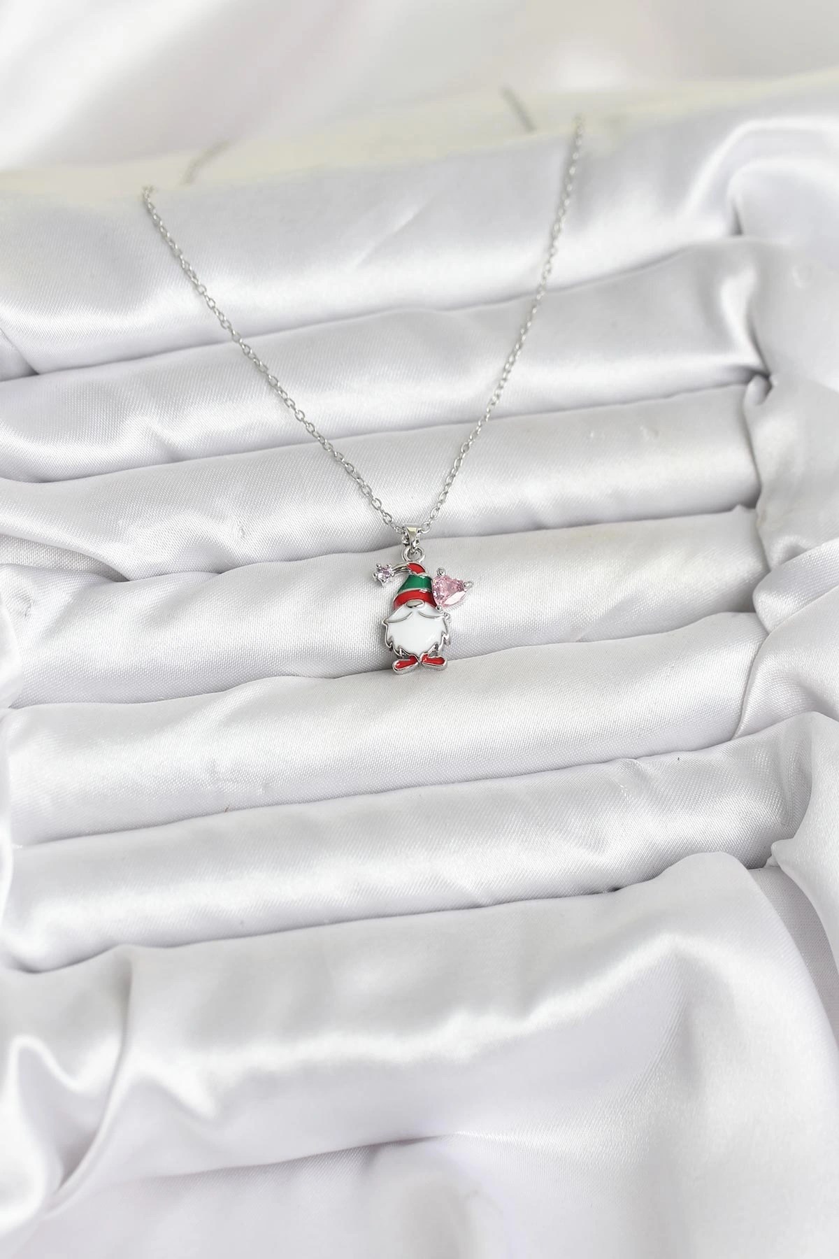 Mey İthalat® 316L Çelik Zincir Gümüş Renk Yılbaşı Teması Kadın Kolye