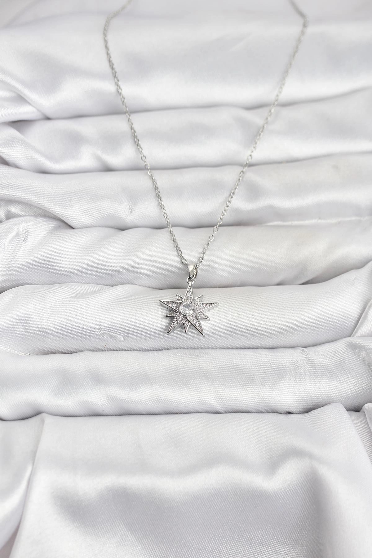 Mey İthalat® 316L Çelik Zincir Gümüş Renk Yıldız Model Zirkon Taşlı Kadın Kolye