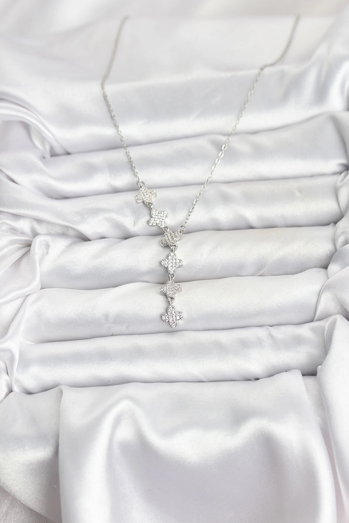 Mey İthalat® 316L Çelik Zincir Gümüş Renk Yonca Model Kadın Kolye