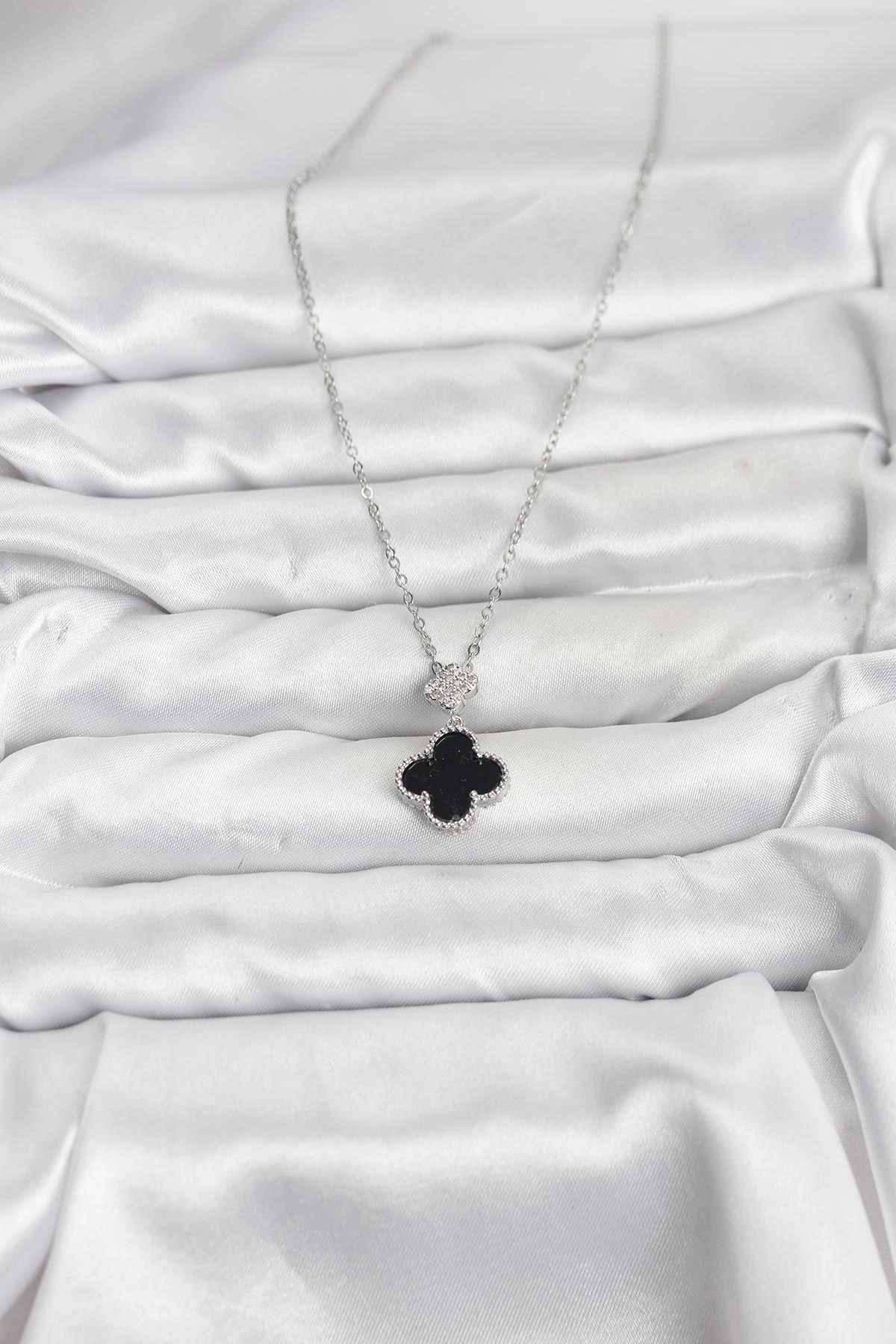 Mey İthalat® 316L Çelik Zincir Gümüş Renk Yonca Model Zirkon Taşlı Kadın Kolye