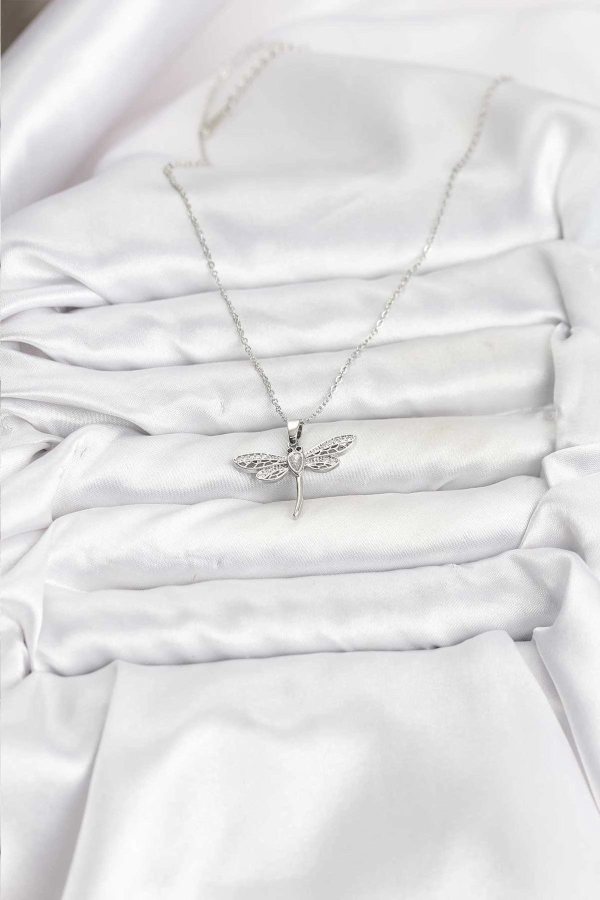 Mey İthalat® 316L Çelik Zincir Gümüş Renk Yusufçuk Model Kadın Kolye