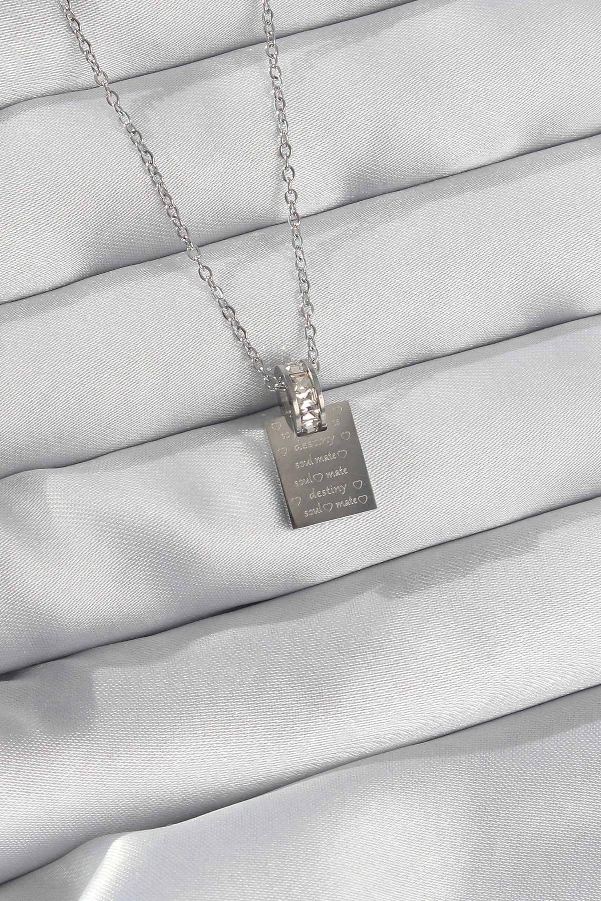 Mey İthalat® 316L Çelik Zincir Gümüş Renk Zirkon Taşlı Aşk Mektubu Kolye