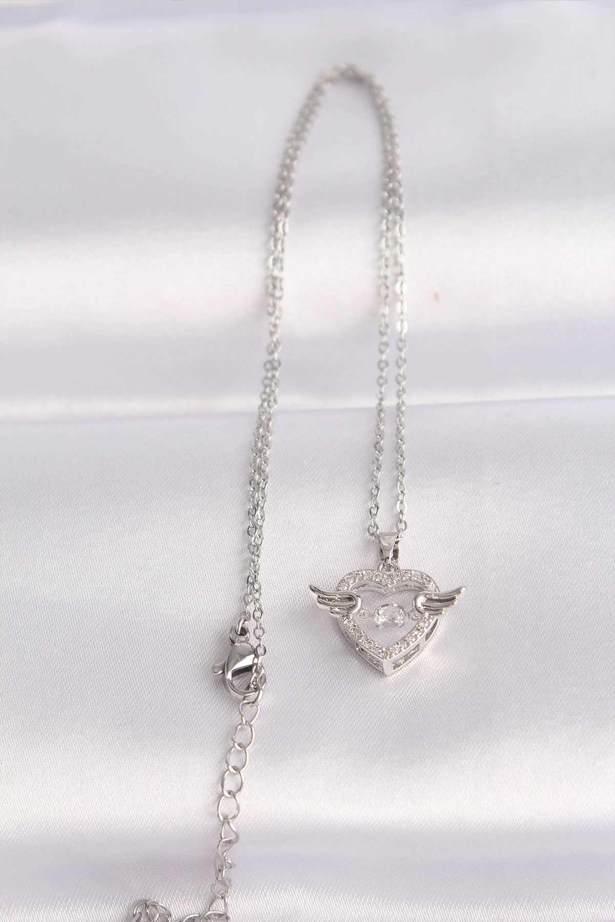 Mey İthalat® 316L Çelik Zincir Gümüş Renk Zirkon Taşlı Kanatlı Kalp Kolye