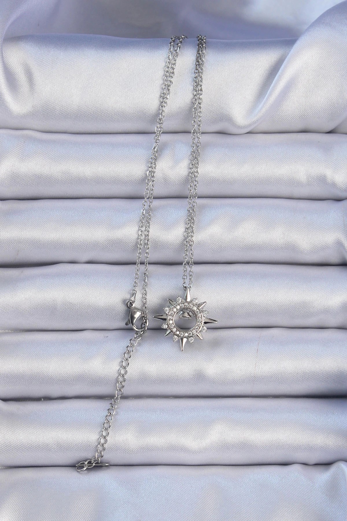 Mey İthalat® 316L Çelik Zincir Gümüş Renk Zirkon Taşlı Parlayan Yıldız Kolye