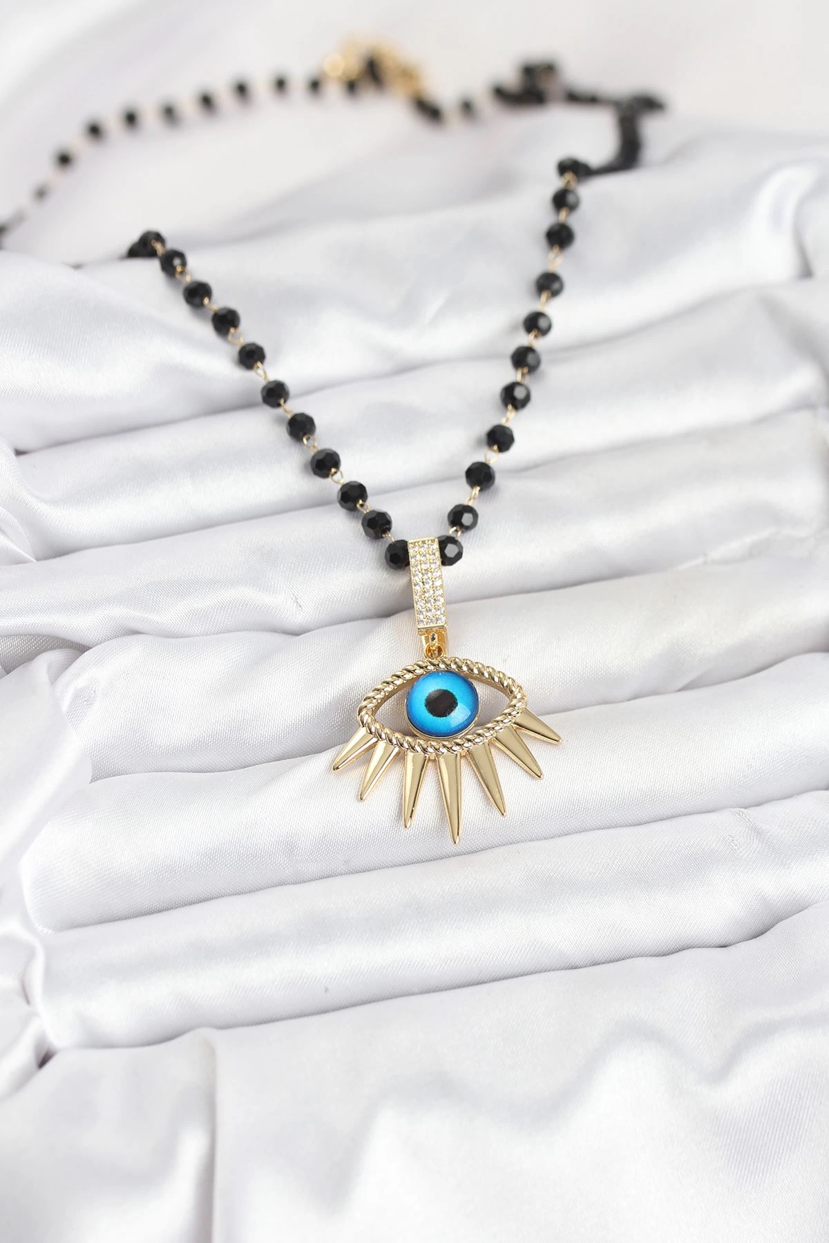 Mey İthalat® 316L Çelik Zincir Kristal Boncuklu Göz Model Kadın Kolye