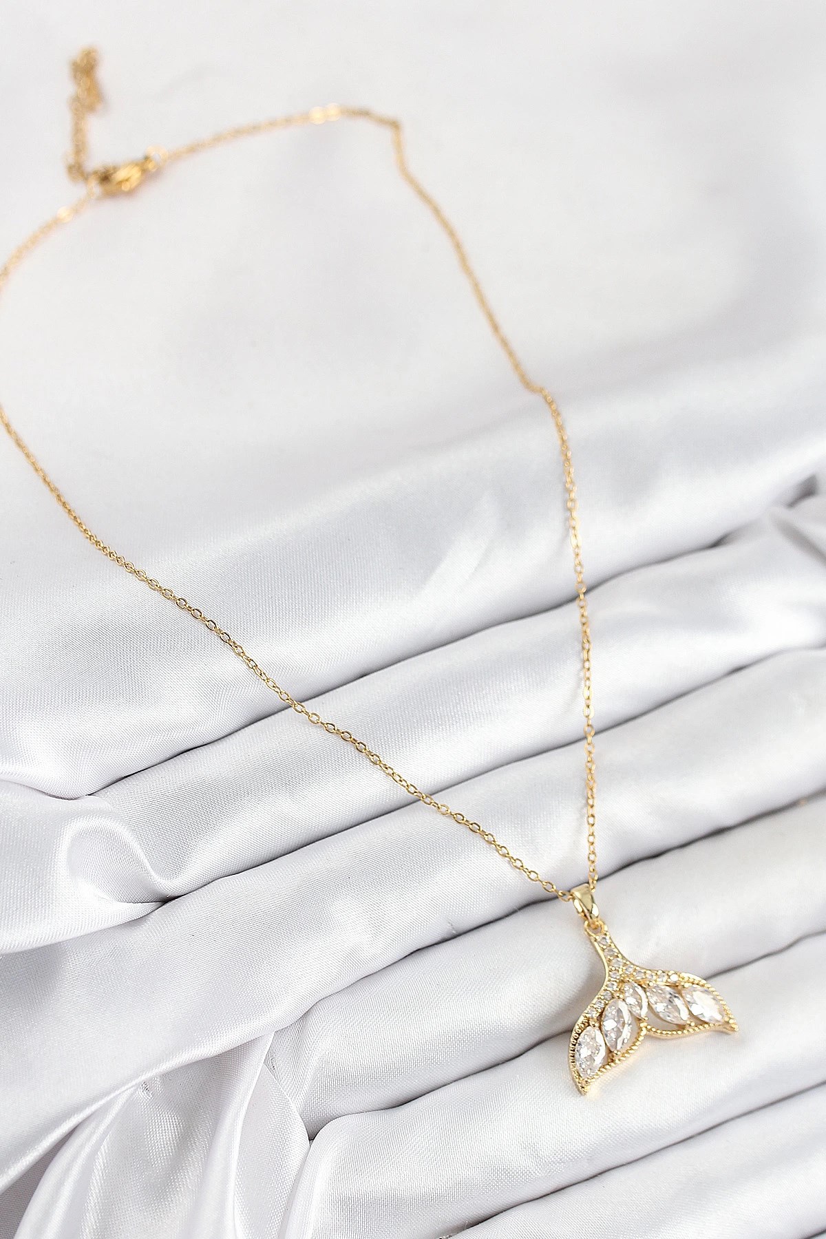 Mey İthalat® 316L Çelik Zirkon Taşlı Balık Kuyruğu Model Gold Renk Kadın Kolye
