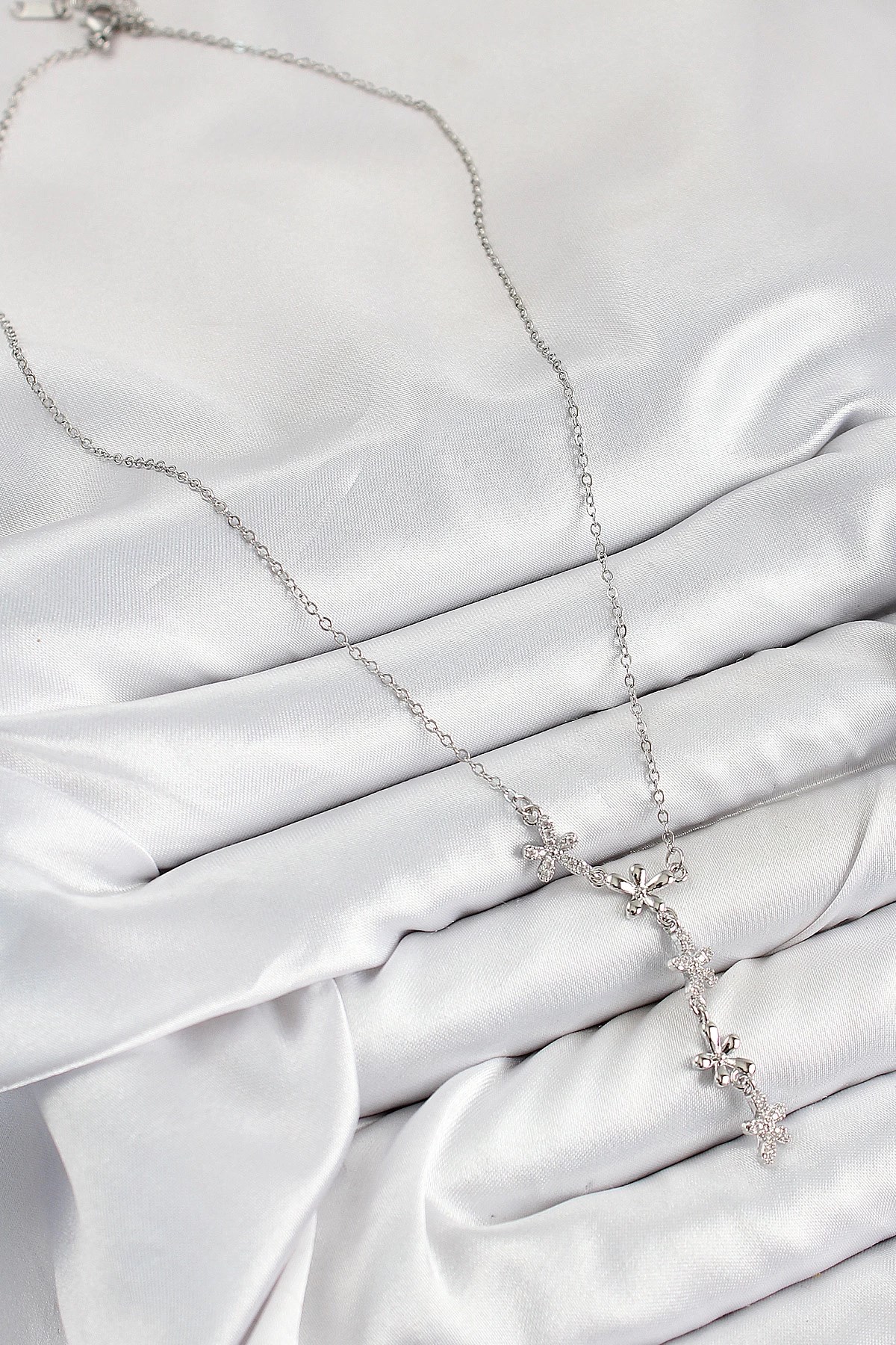 Mey İthalat® 316L Çelik Zirkon Taşlı Çiçek Model Gümüş Renk Kadın Kolye