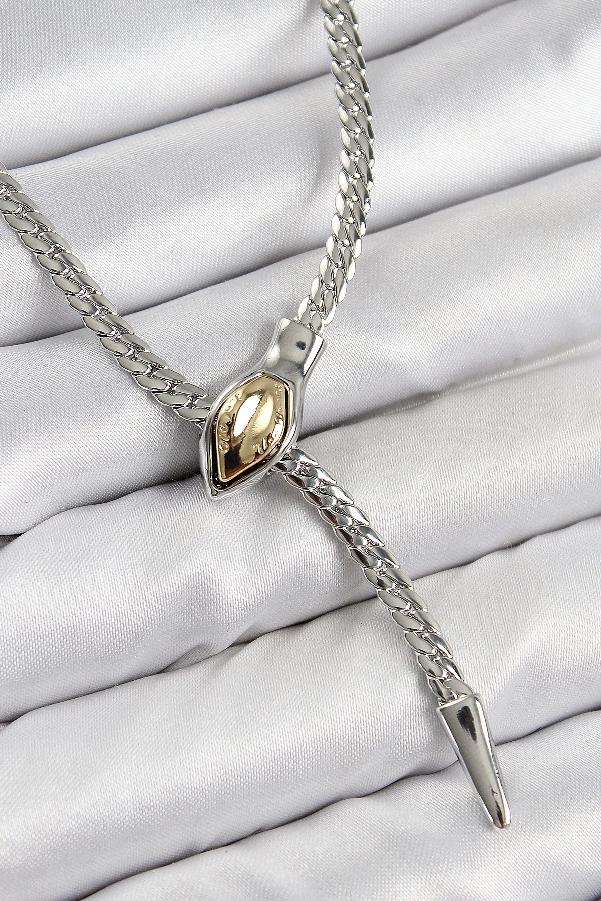 Mey İthalat® 316L Çelik Zirkon Taşlı Çift Renkli Tifany Kolye