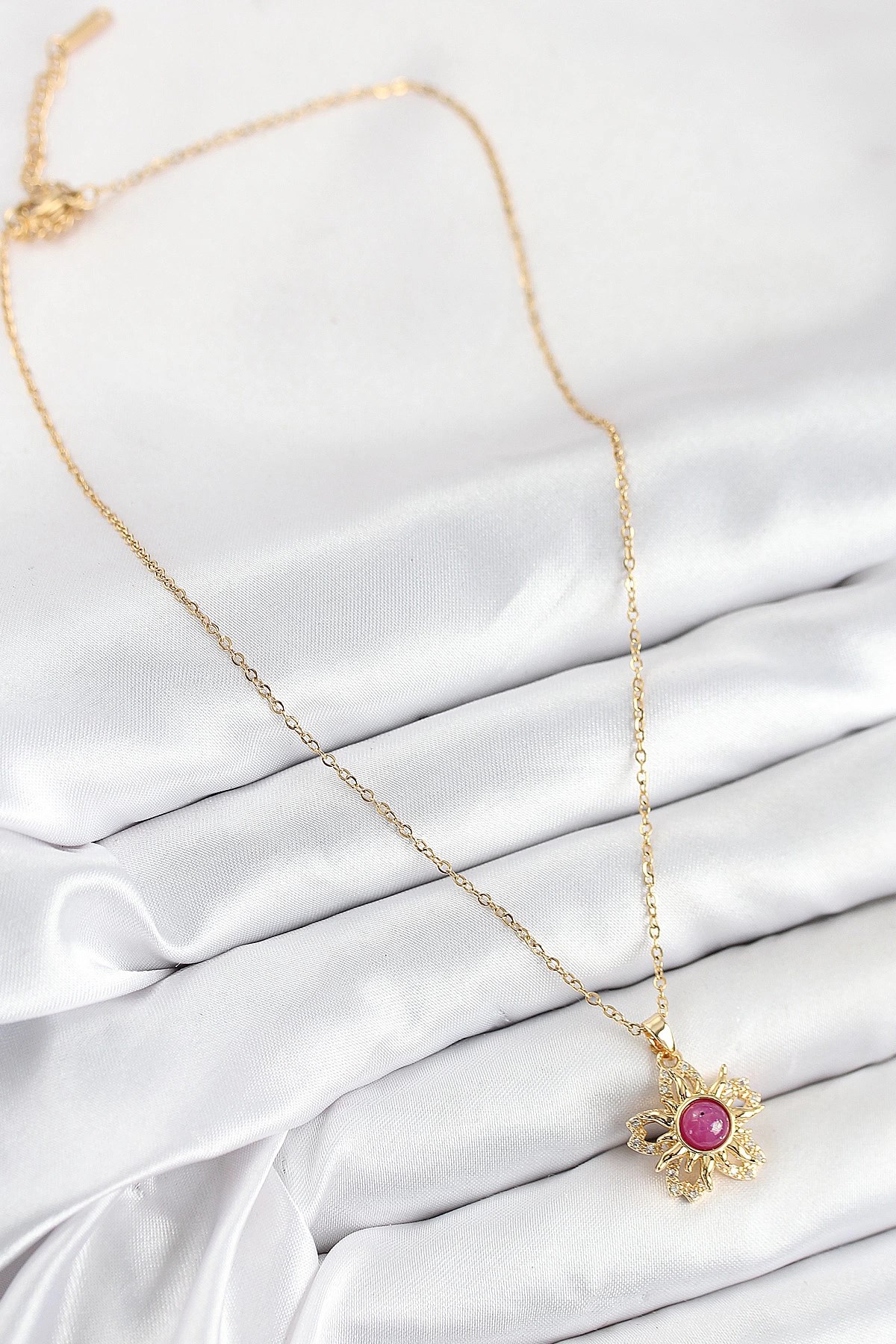 Mey İthalat® 316L Çelik Zirkon Taşlı Döner Güneş Model Gold Renk Kadın Kolye