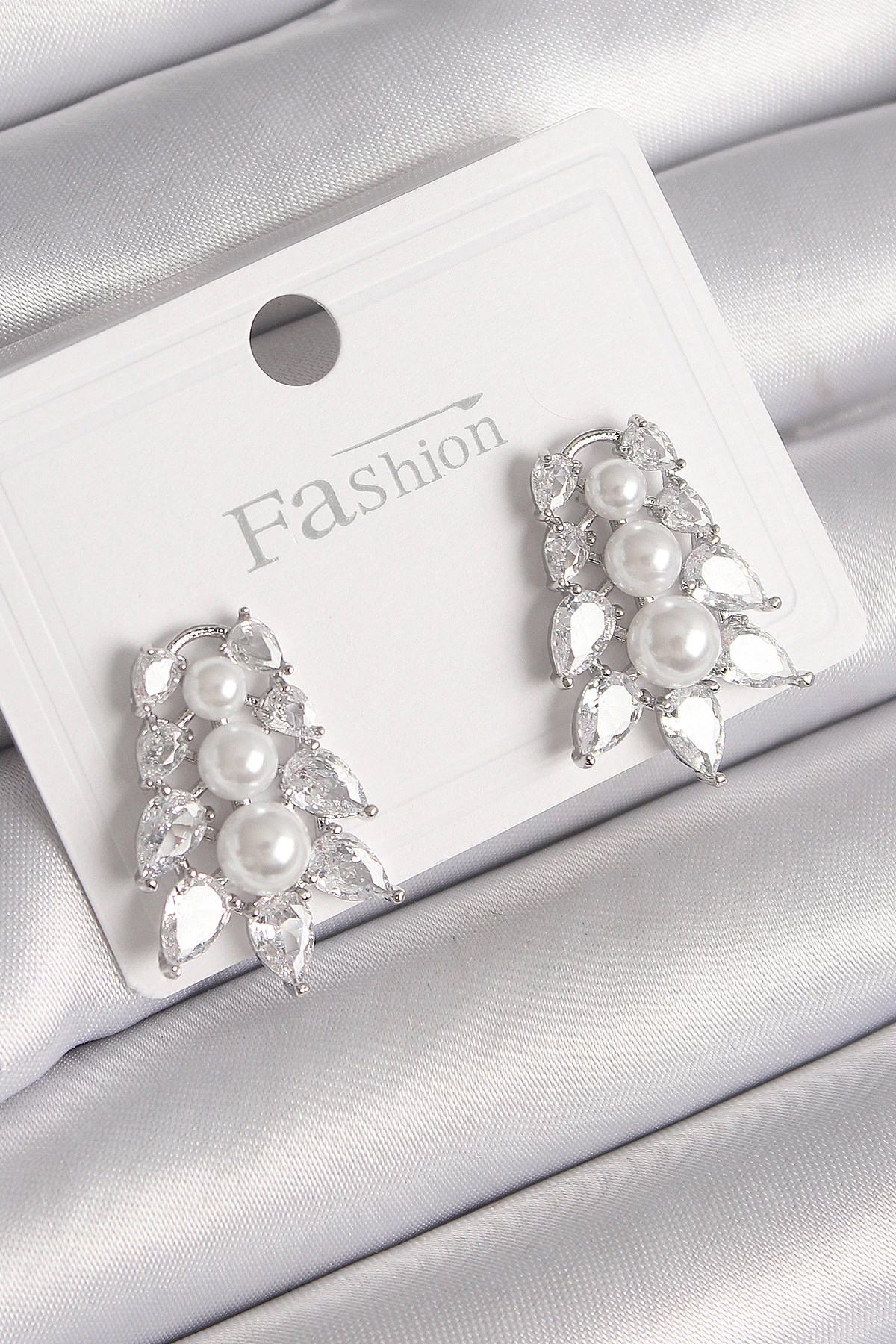 Mey İthalat® 925 Ayar Gümüş Çivi Zirkon Taşlı Hilal Yıldız Model Kadın Küpe Seti
