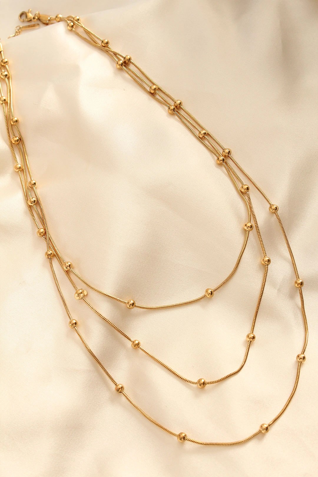 Mey İthalat® Çelik Altın Renkli Topçuk Tasarımlı Çoklu Kolye