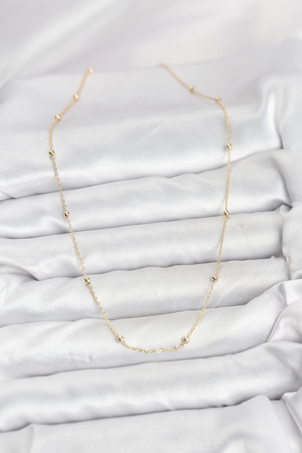 Mey İthalat® CM 14K Gold Renk Minik Top Zincirli Kadın Kolye