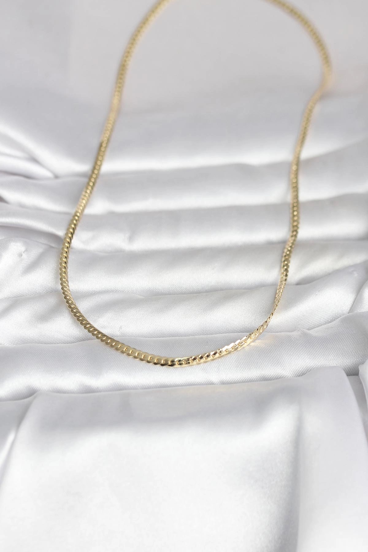 Mey İthalat® CM 14K Gold Renk Yassı Zincir Model 45 cm Kadın Kolye