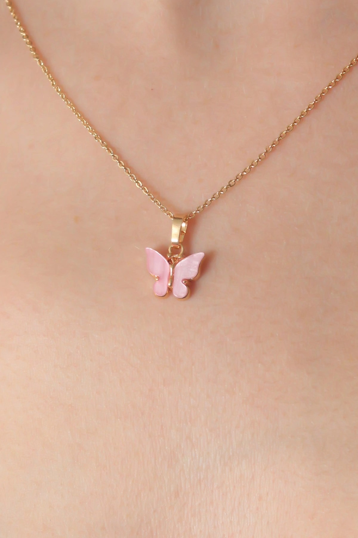 Mey İthalat® Gold Pembe Renk Kelebek Figür Kadın Kolye