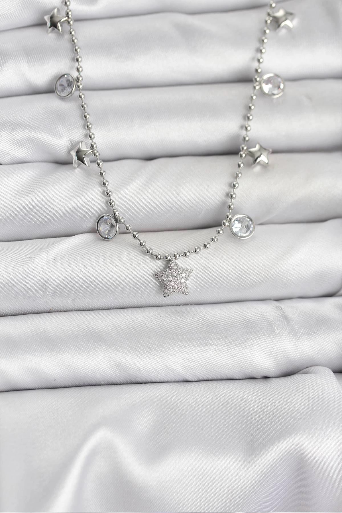 Mey İthalat® Gold Renk Pirinç Yıldız Zirkon Taşlı Kadın Kolye