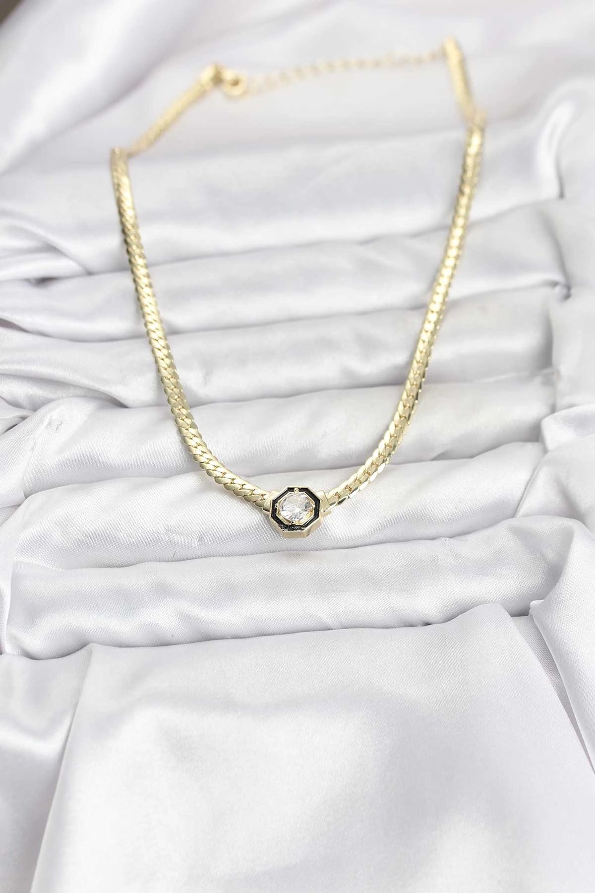 Mey İthalat® Gold Renk Pirinç Zirkon Taşlı Kadın Kolye