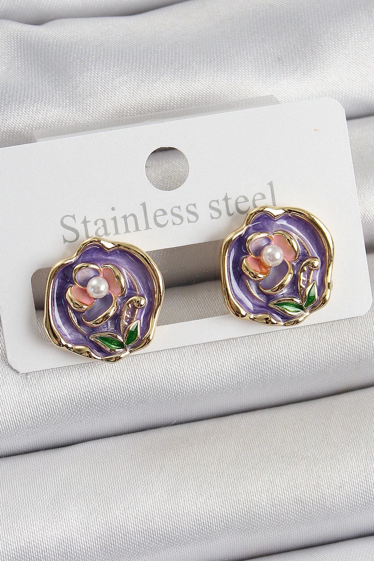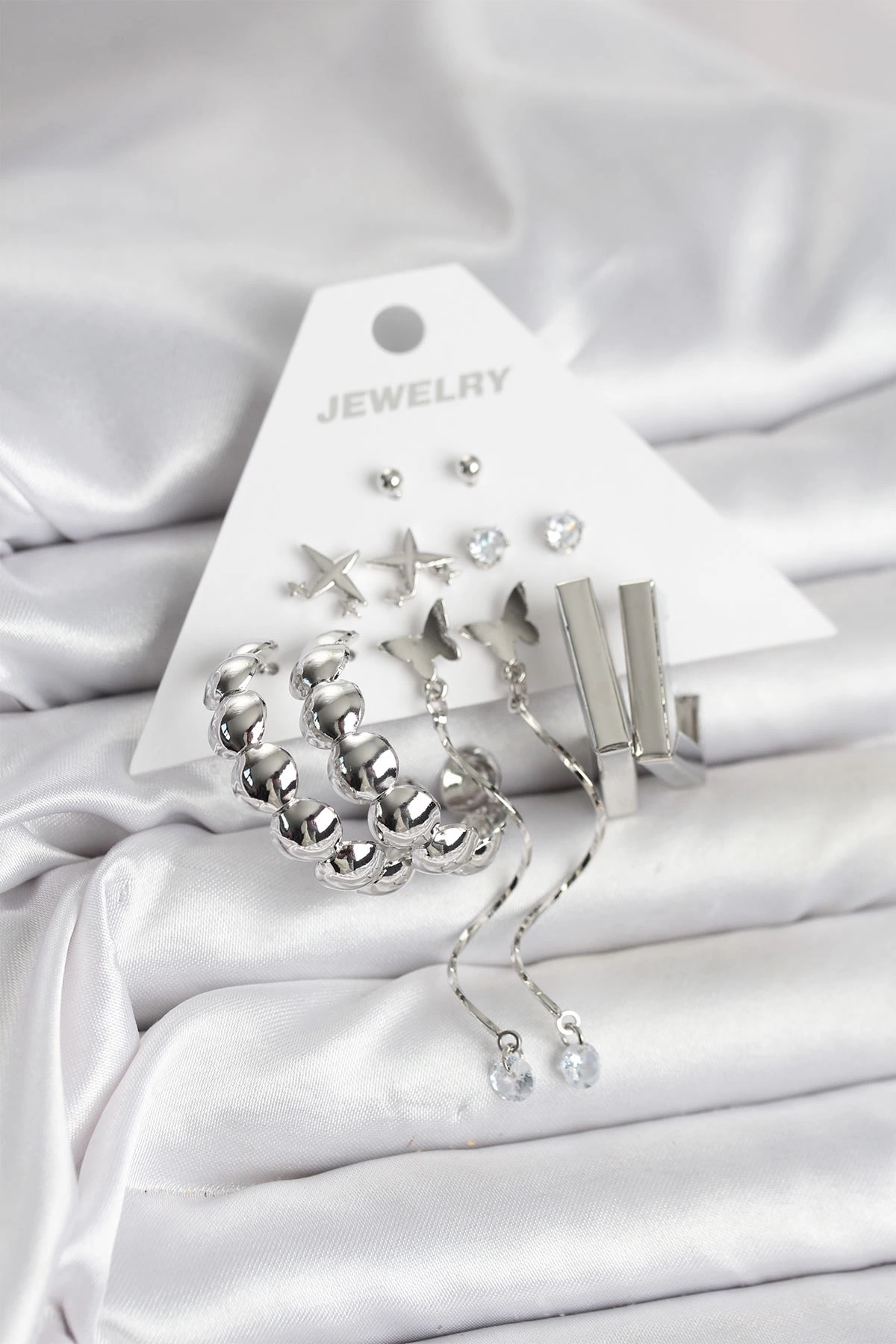 Mey İthalat® Gümüş Renk İşleme Detay Pirinç Kadın Küpe