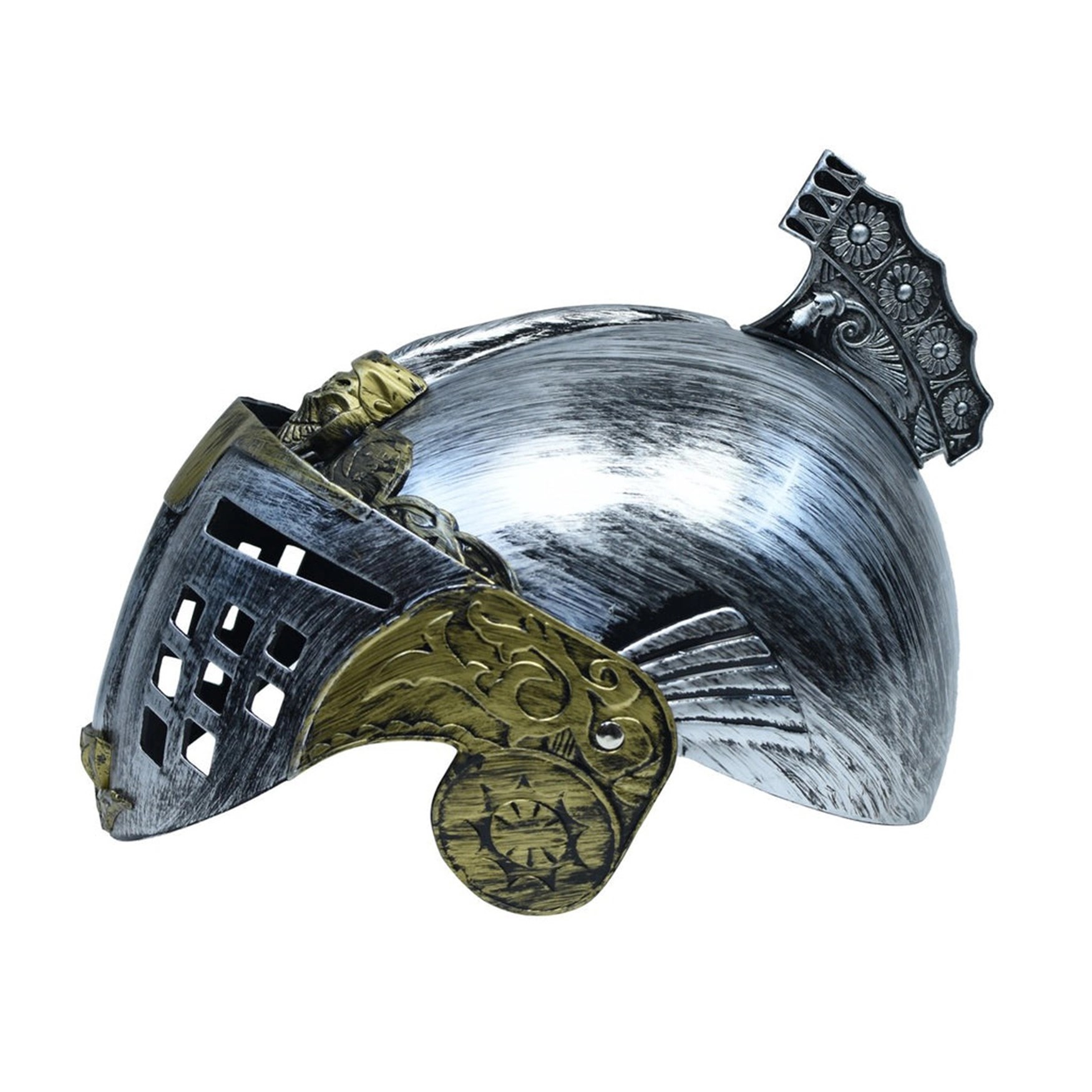 Mey İthalat® Gümüş Üzeri Altın Renk Oynar Başlıklı Romalı Bizans Kaskı Miğferi 25x20 cm