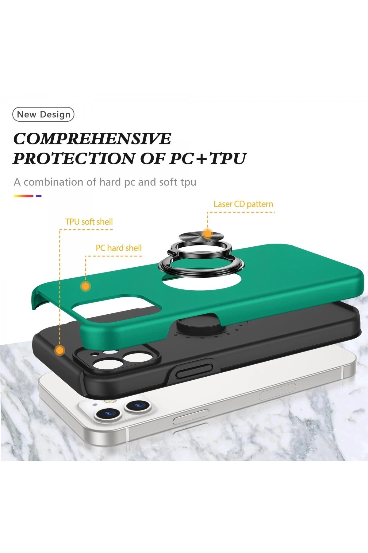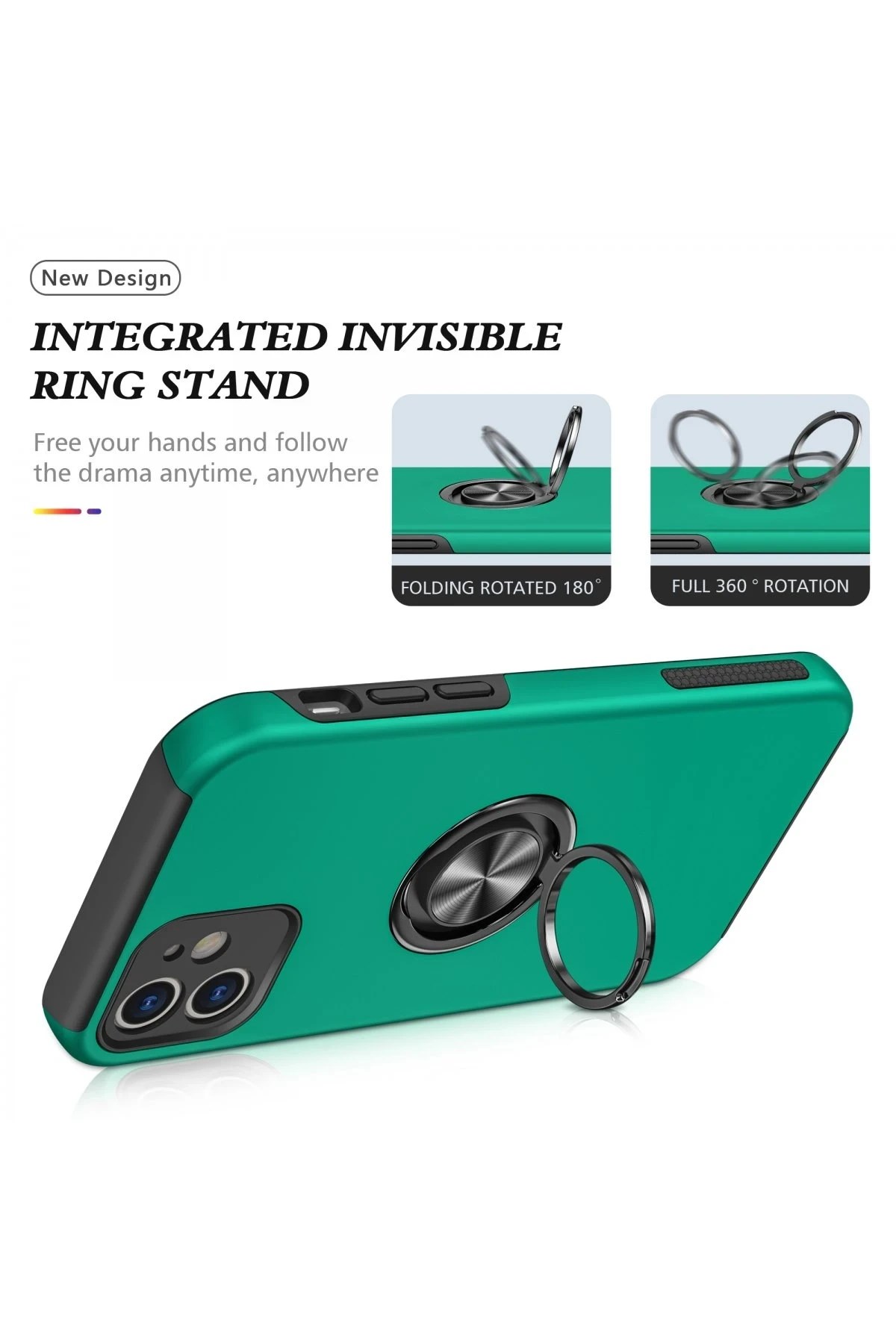 Kapak üzerinde yer alan 360° dönebilen silindir metal yüzük, hem stand işlevi görür hem de mıknatıs özelliği sayesinde araç içi manyetik telefon tutucularla tam uyum sağlar.