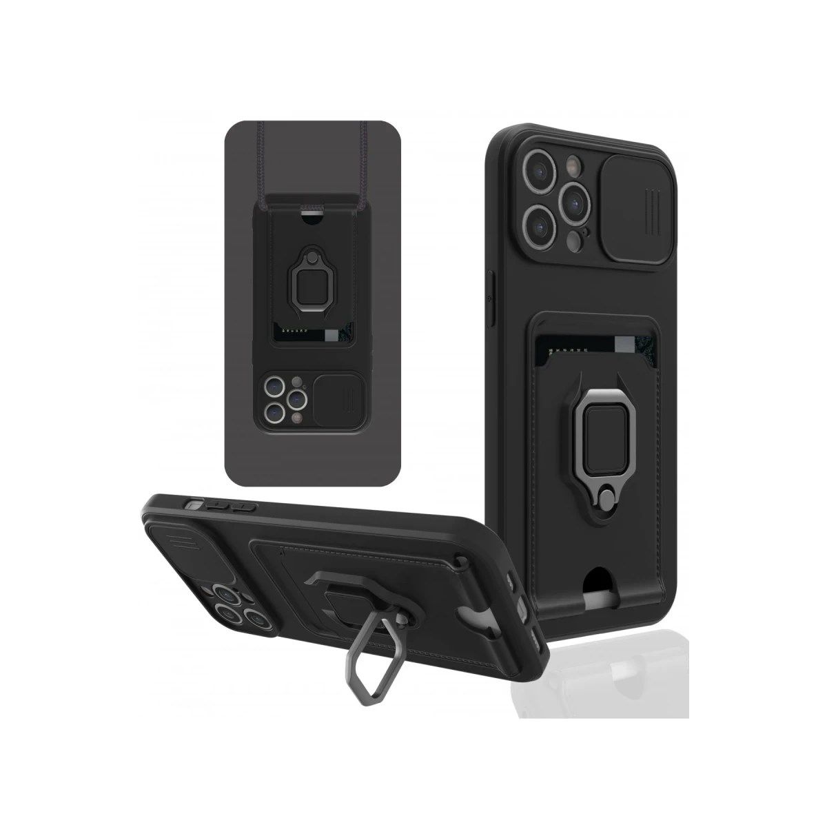 Kart Bölmeli | Kamera Korumalı | Stand Yüzük Destekli | Soft TPU Tasarım