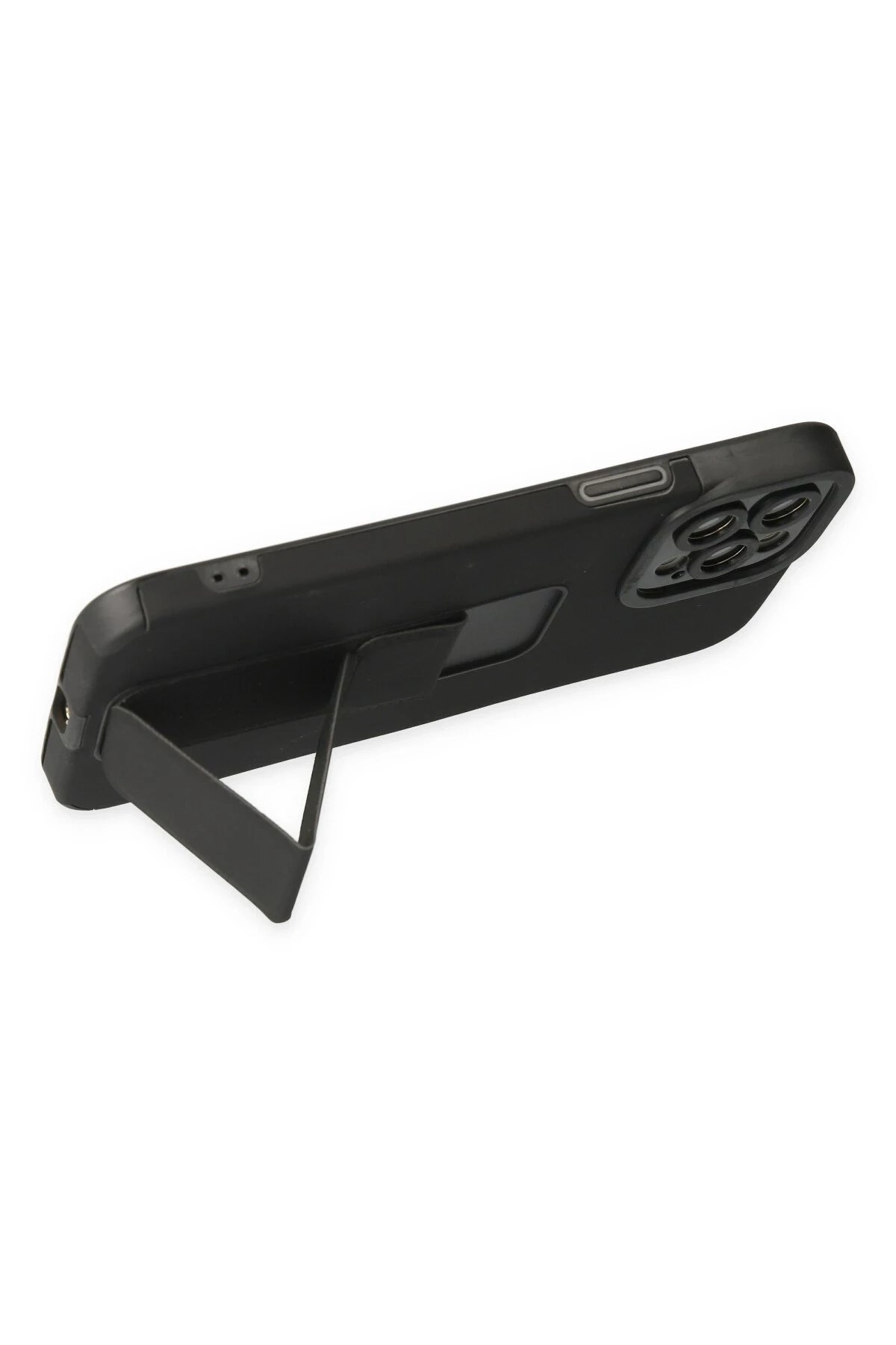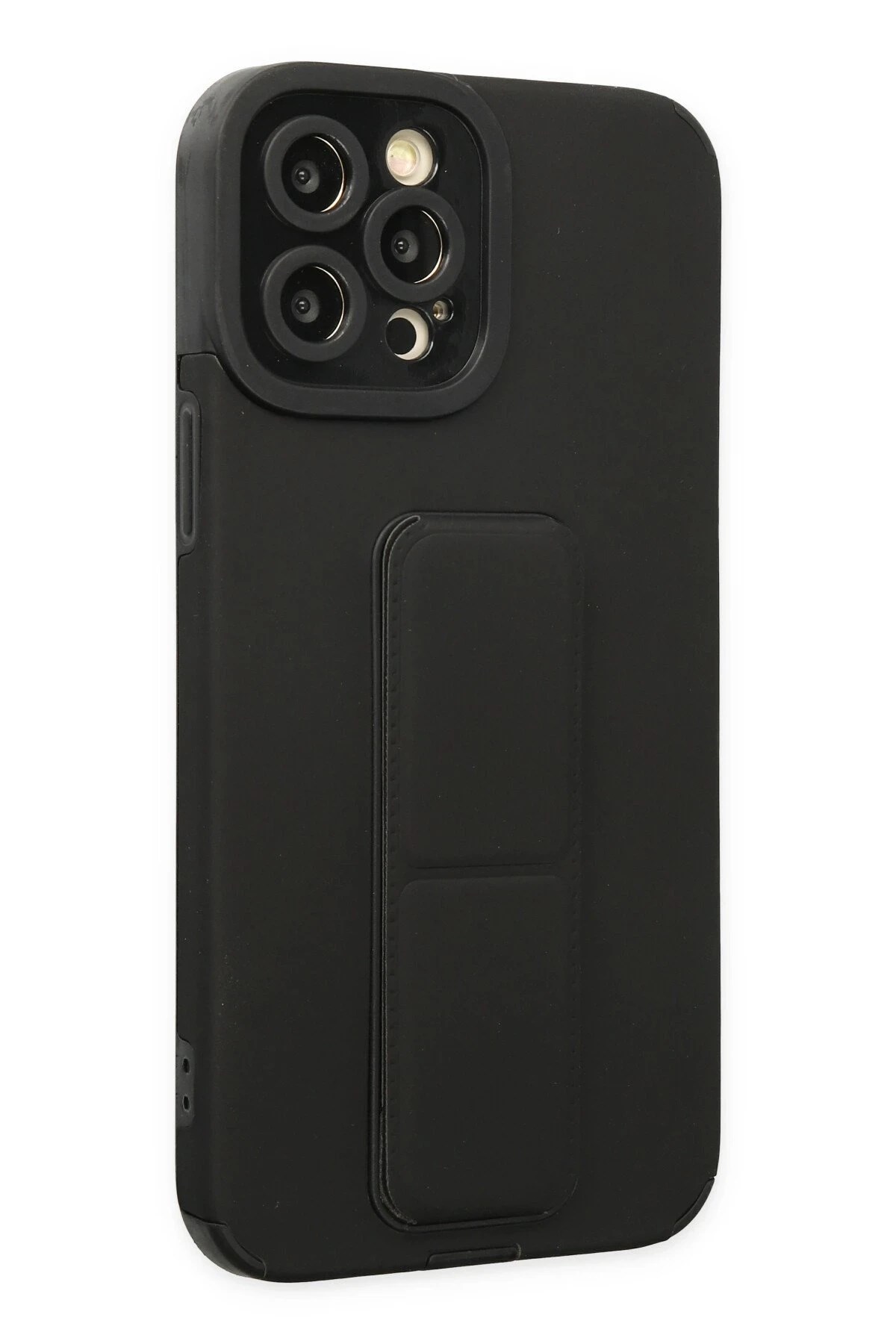 Mey İthalat® iPhone 12 Pro Max Kılıf Mega Standlı Silikon - Siyah