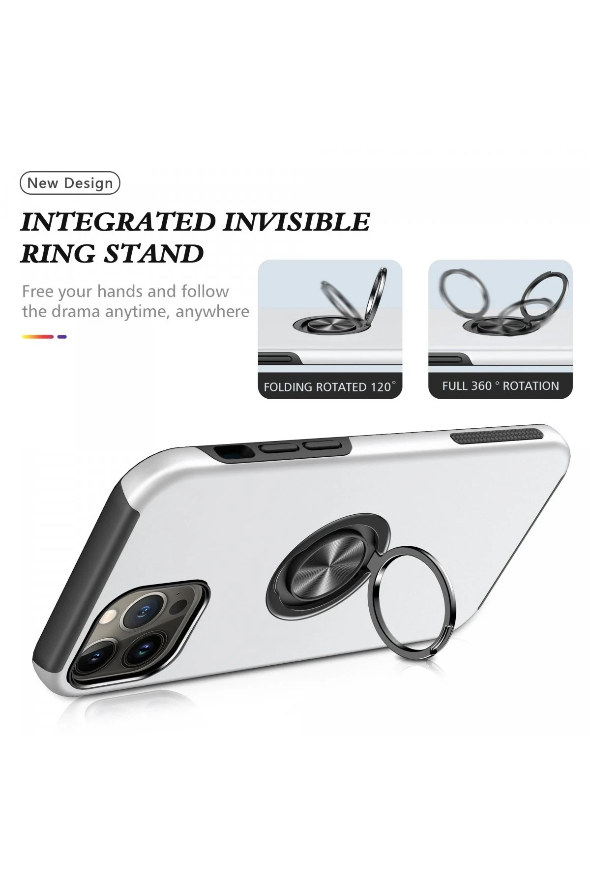 Kapak üzerinde yer alan 360° dönebilen silindir metal yüzük, hem stand işlevi görür hem de mıknatıs özelliği sayesinde araç içi manyetik telefon tutucularla tam uyum sağlar.
