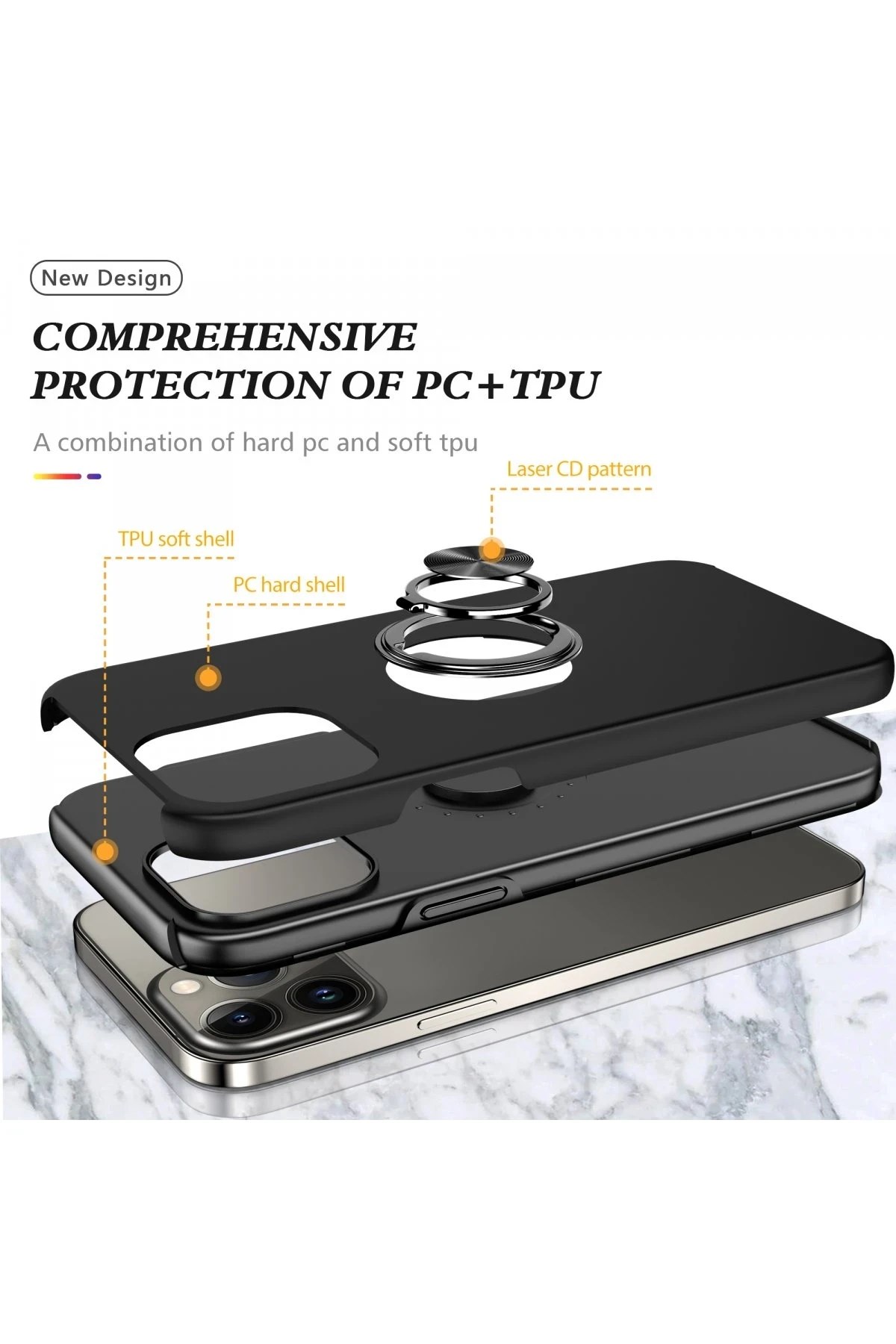 Kapak üzerinde yer alan 360° dönebilen silindir metal yüzük, hem stand işlevi görür hem de mıknatıs özelliği sayesinde araç içi manyetik telefon tutucularla tam uyum sağlar.