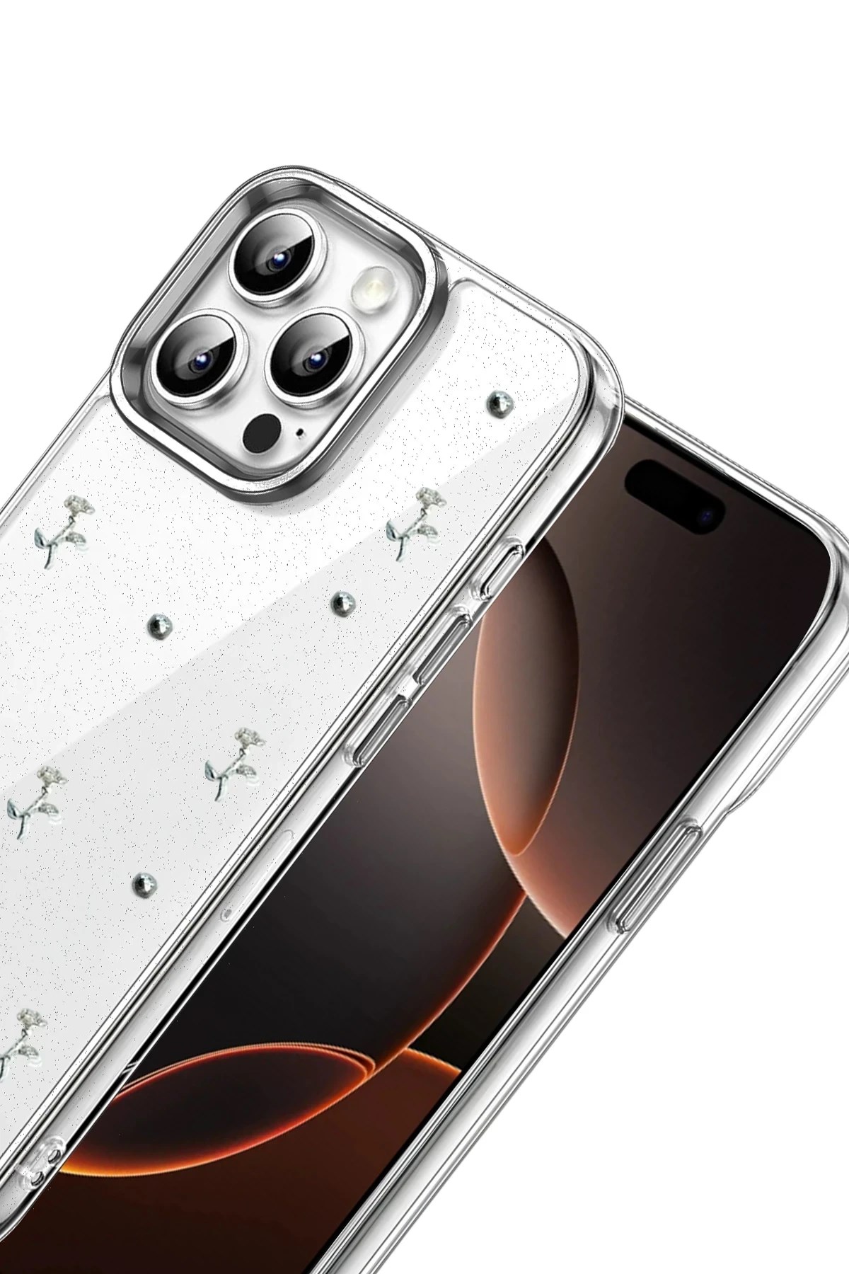 Fiyonk, yıldız, kelebek, lale, çiçek, kalp ve gül gibi zarif detaylarla süslenmiş bu kapak; simli, şeffaf tasarımıyla estetik ve korumayı bir araya getiriyor. Telefonunuzu yalnızca dış etkenlerden korumakla kalmaz, aynı zamanda ona göz alıcı bir stil kazandırır. Günlük kullanımda dikkat çeken tasarımı sayesinde cihazınızın şıklığı öne çıkar.