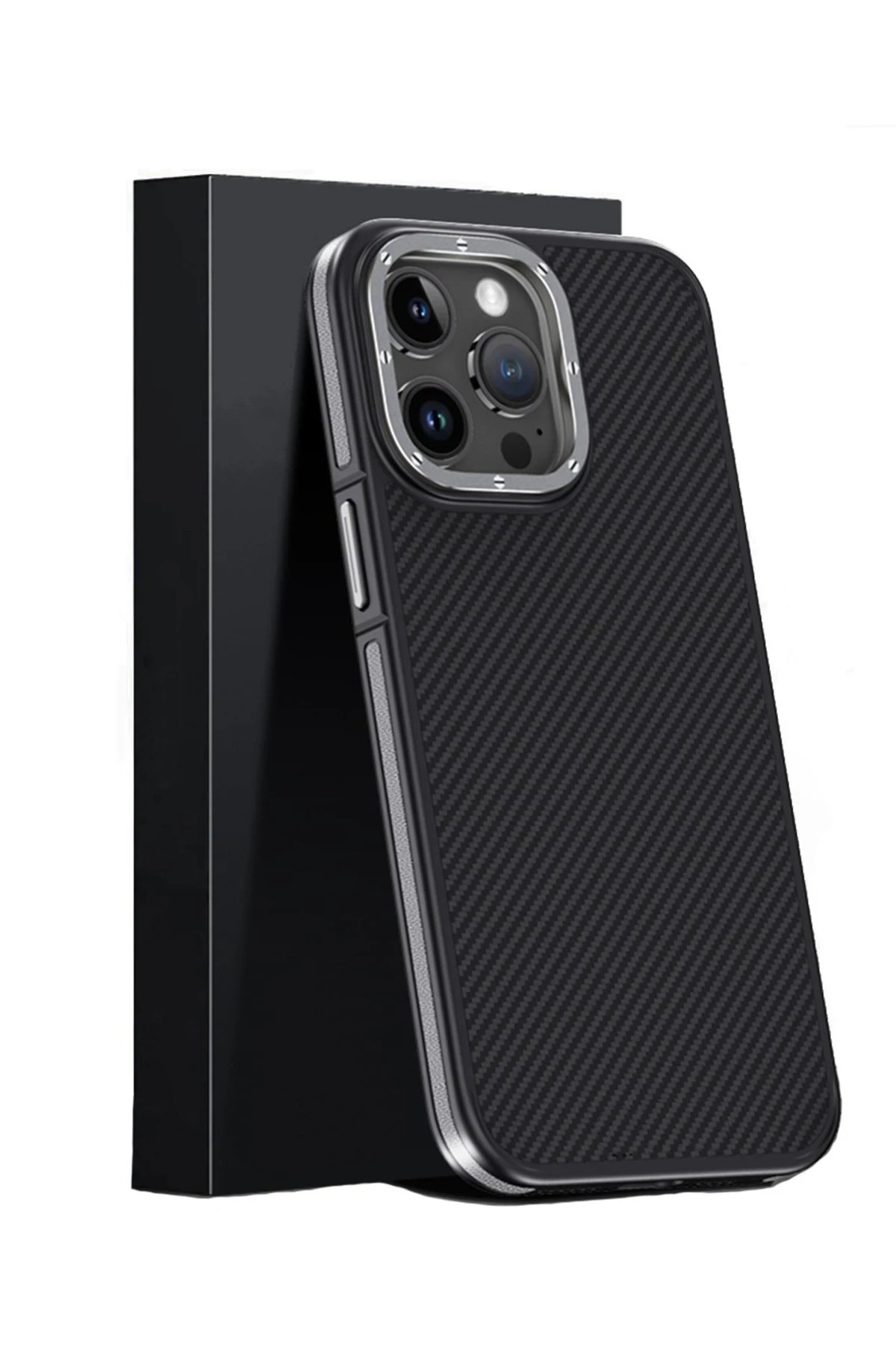 iPhone 15 Pro / 15 Pro Max Kılıf Aramid 600D Kevlar Karbon Fiber Magsafe Kapak